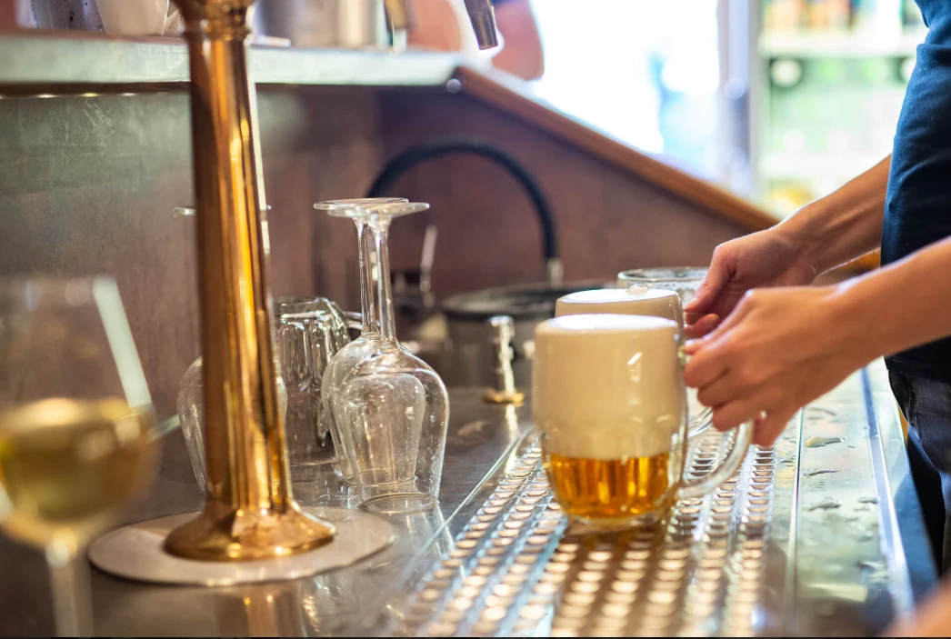 Součástí sálu je masivní bar s výčepním pultem, který má dvě mosazné hlavy Pilsner Urquell a tři kohouty. Bar je vybaven dřezem, odkapem, ostřikem, myčkou skla, kávovarem, varnou konvicí a velkou prosklenou lednicí na nápoje. K dispozici je také kompletní sklo na pivo, víno, sekt, likéry, kávu a nealko.