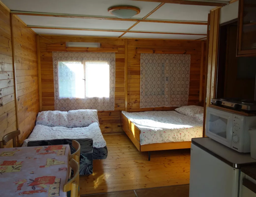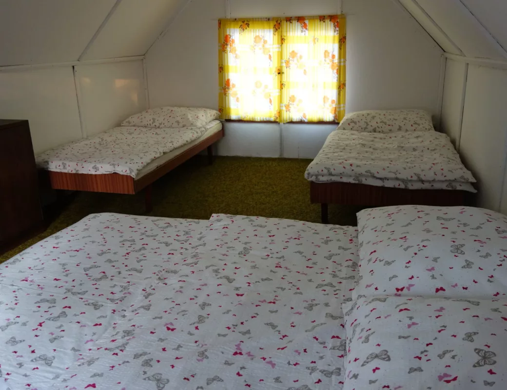 Každá chata nabízí spaní na 4 válendách v podkroví a na rozkládací pohovce s plnohodnotnými 2lůžky v přízemí, takže je dostatek prostoru pro rodinu nebo přátele.