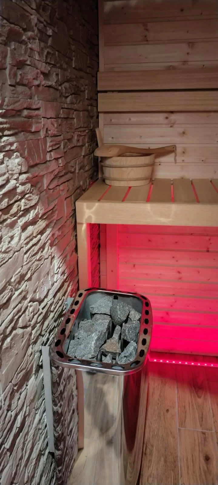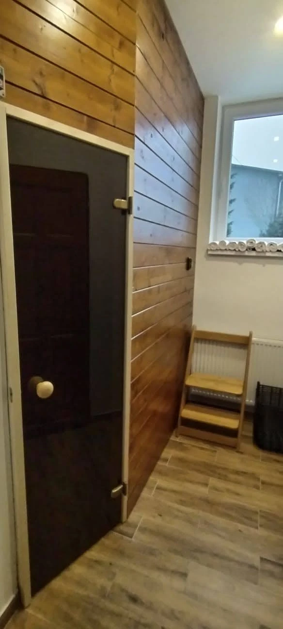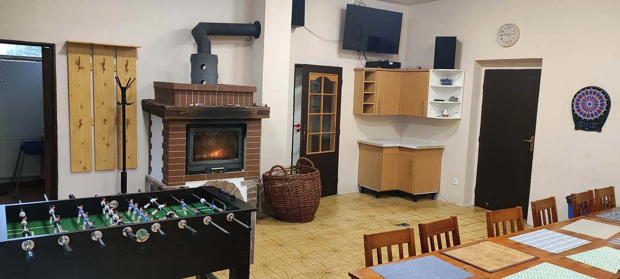 Hlavní společenská místnost s kapacitou až 15 osob tvoří centrum chaty. Místnost je vybavena velkým krbem a plně vybavenou kuchyní, což zajišťuje komfortní pobyt pro větší skupiny. K dispozici jsou pohodlné pokoje pro ubytování hostů. Za poplatek můžete využít finskou saunu.