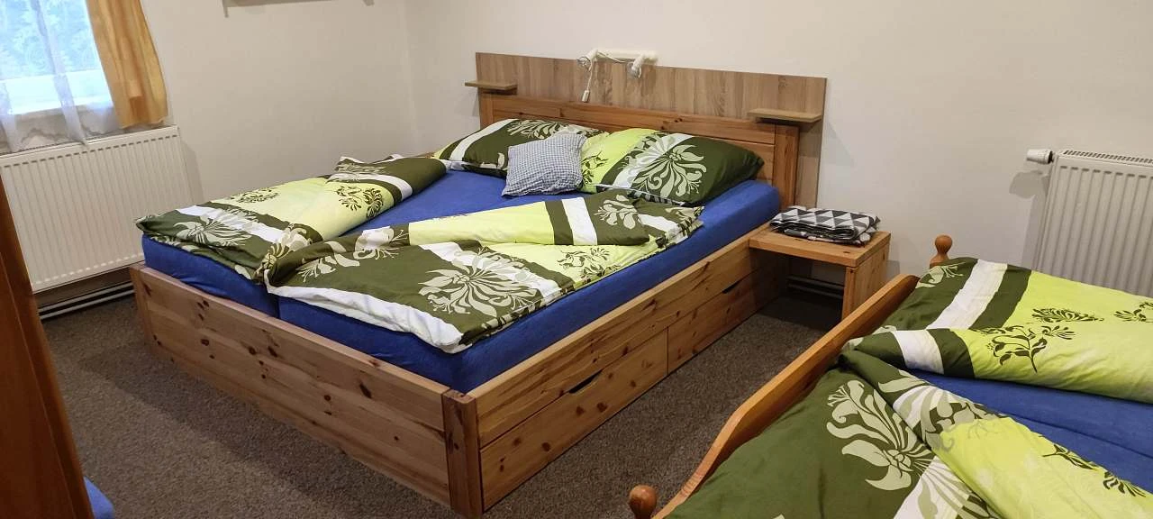 Chalupa nabízí ubytování pro 4 až 15 osob v celkem 4 ložnicích. Objekt je vhodný pro větší skupiny, rodiny nebo party přátel.