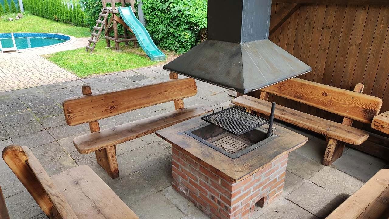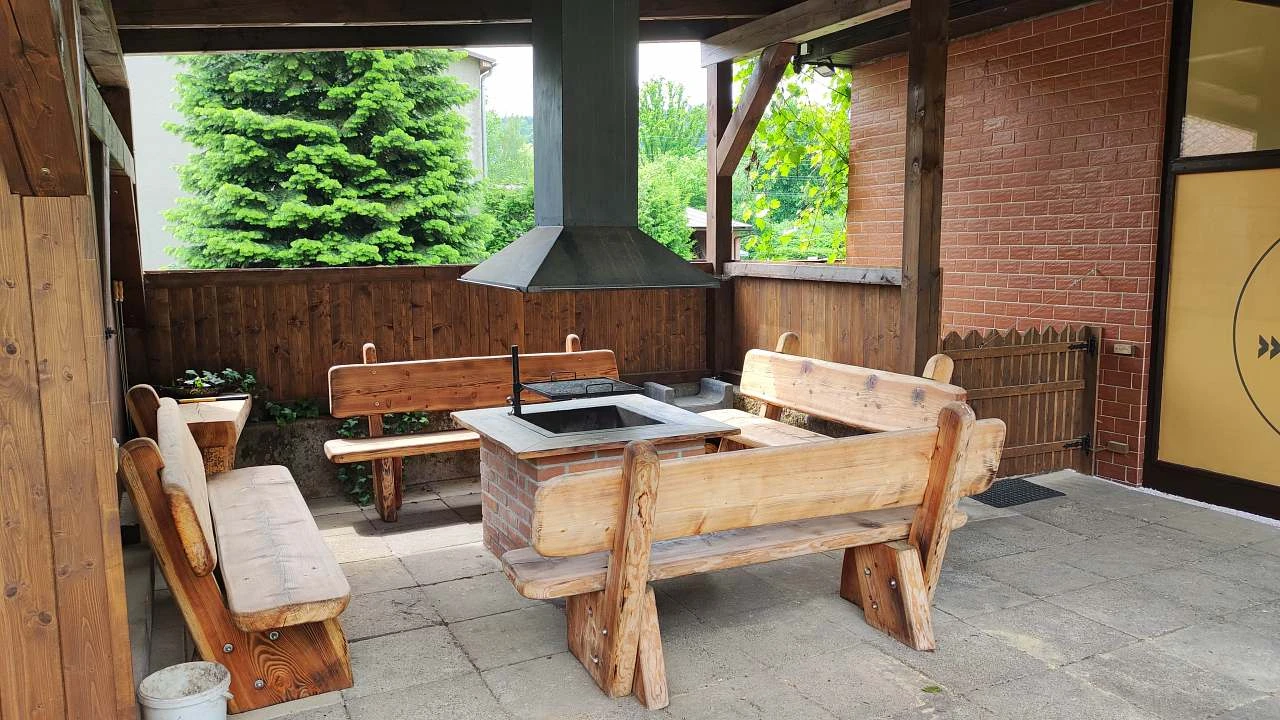 Před objektem se nachází zastřešená terasa s grilem. Venkovní areál dále zahrnuje: