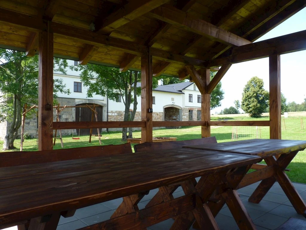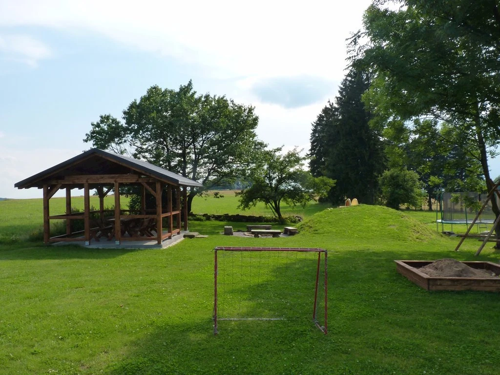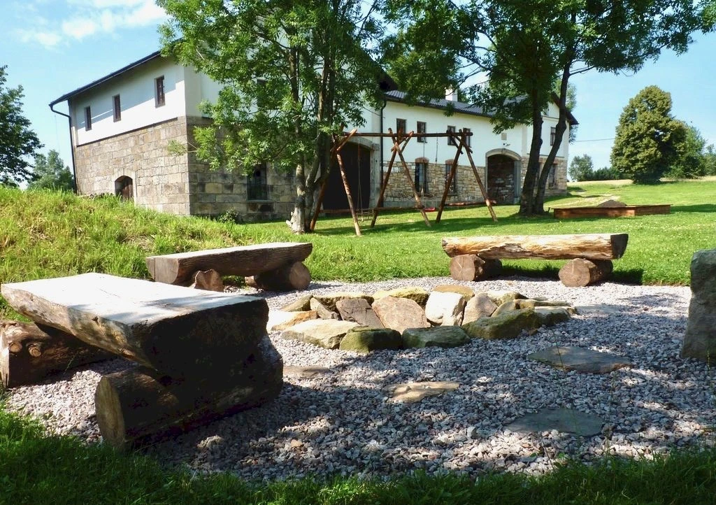 Na zahradě je altán s posezením, gril a ohniště. Děti mohou využívat dětské hřiště s pískovištěm, houpačkou, prolézačkami, skluzavkou a trampolínou. Ubytování je dále vybaveno dětskou postýlkou a vysokou židličkou. Pro sportovní aktivity jsou k dispozici fotbal, petangue a badminton. K dispozici je také úschovna na kola. Parkování je možné přímo u objektu.