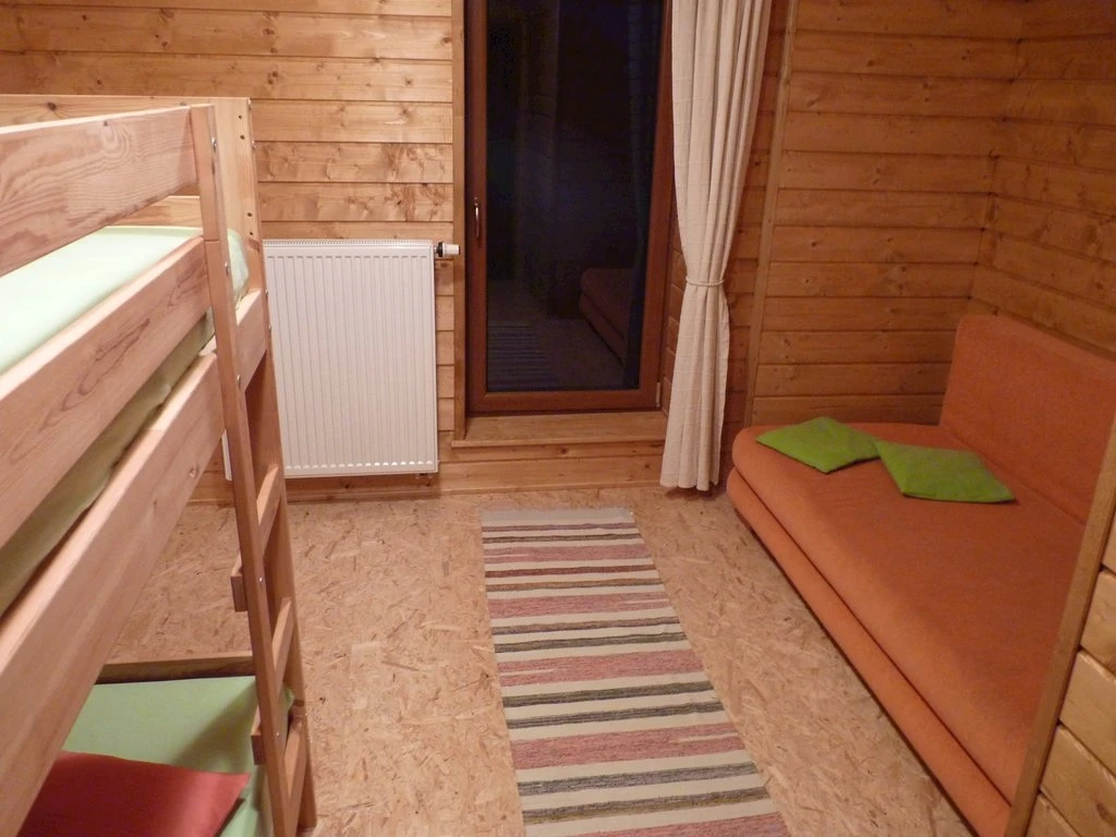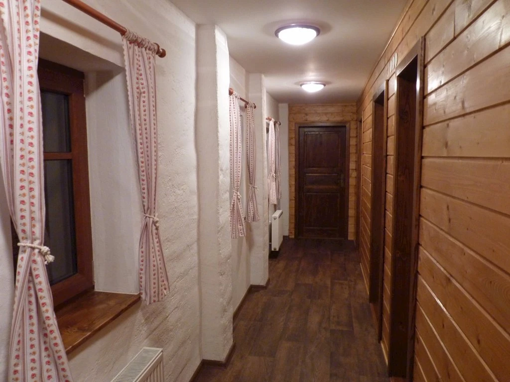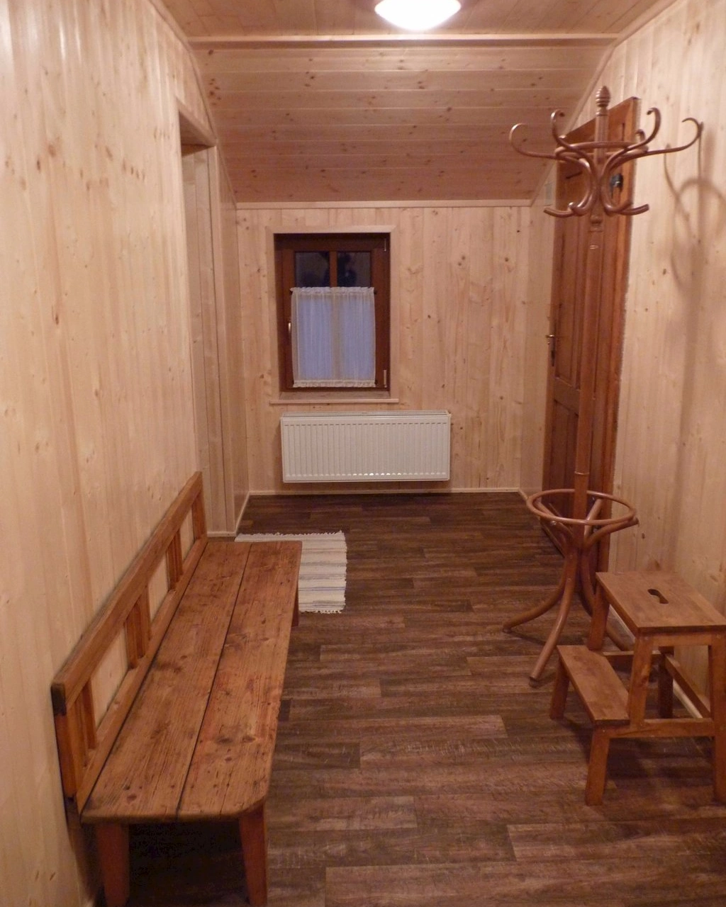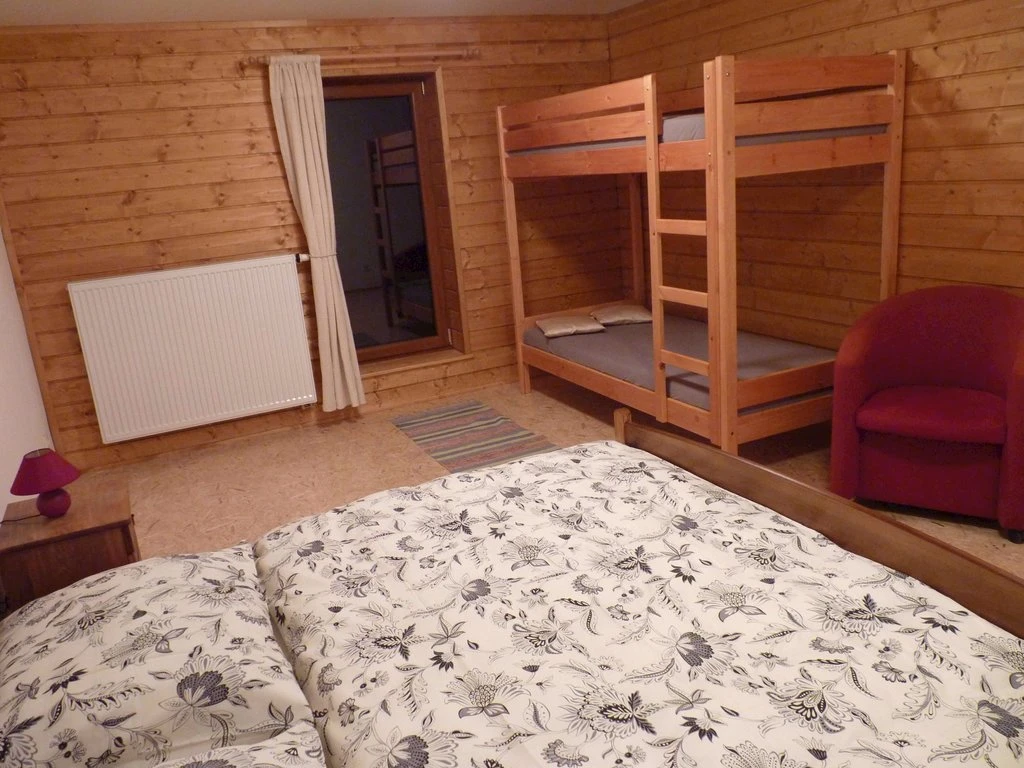 - Pokoje: tři čtyřlůžkové pokoje, každý s manželskou postelí, patrovou postelí a přístupem na balkon; jeden pokoj má navíc přistýlky pro dvě osoby.