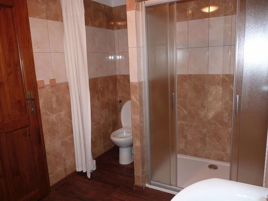 - Koupelna: sprchový kout, pračka, toaleta. K dispozici je i další samostatná toaleta.