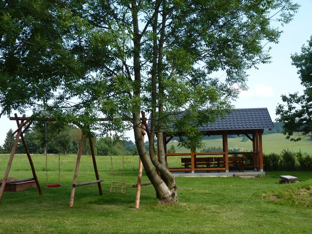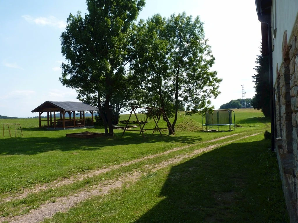 - Dětské vybavení: dětské hřiště s pískovištěm, houpačkou, prolézačkami, skluzavkou, trampolínou; dětská postýlka a vysoká židlička.