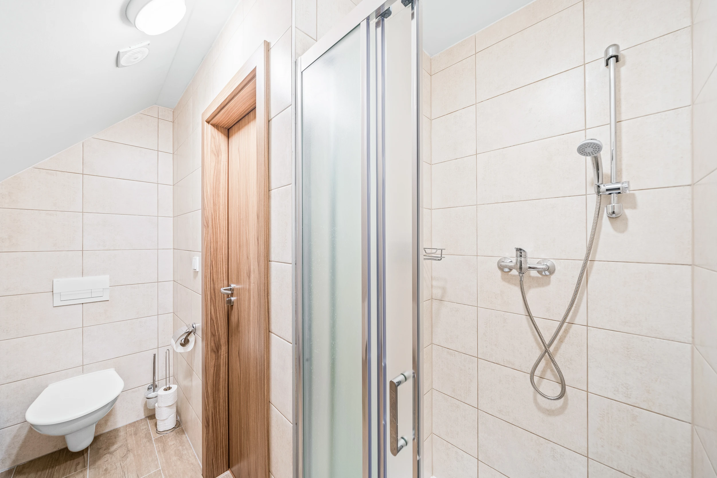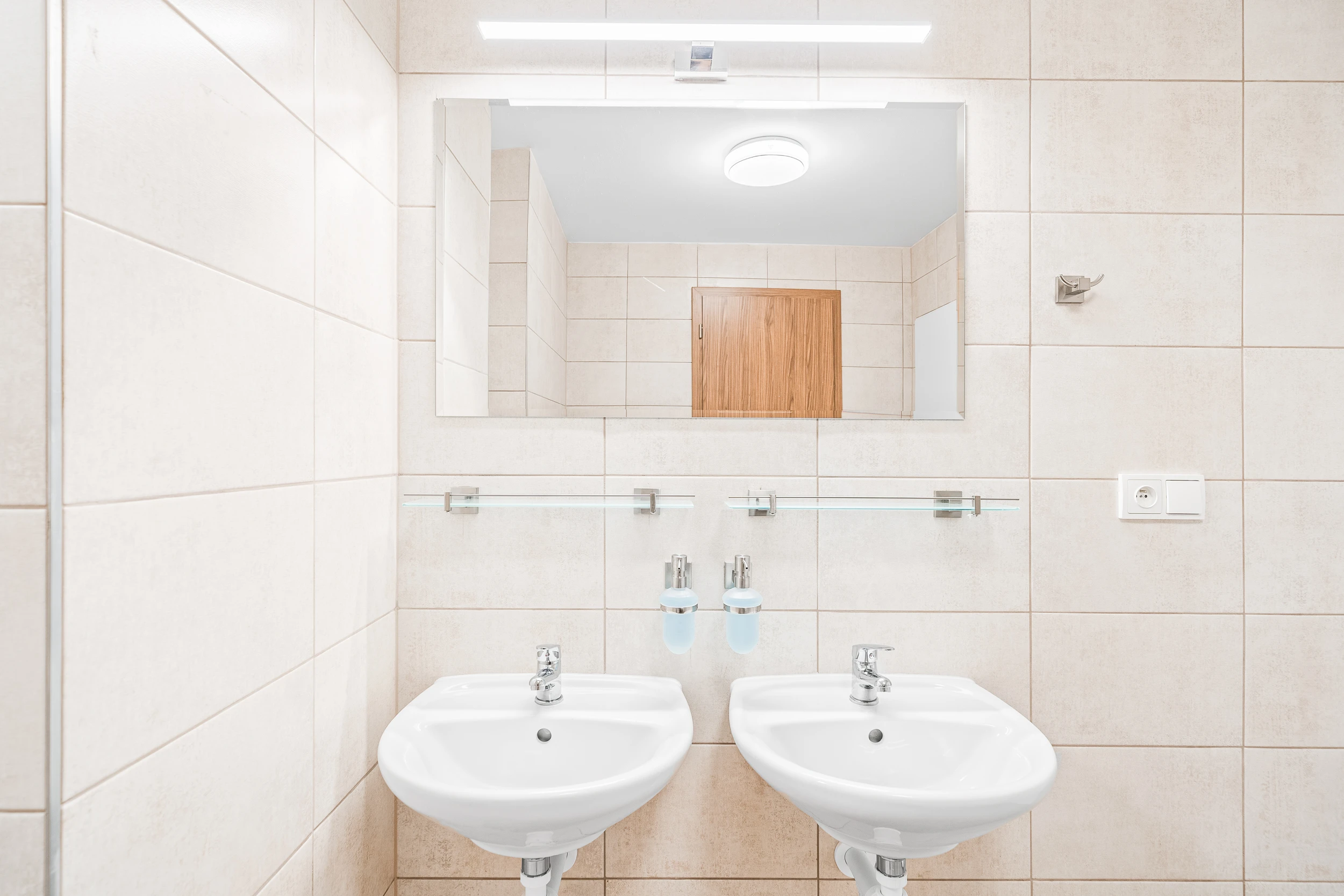 K dispozici jsou 2 samostatné koupelny. V přízemí se nachází koupelna se 3 WC, 2 umyvadly a 2 sprchami, v prvním patře je koupelna s WC, umyvadlem a sprchou.