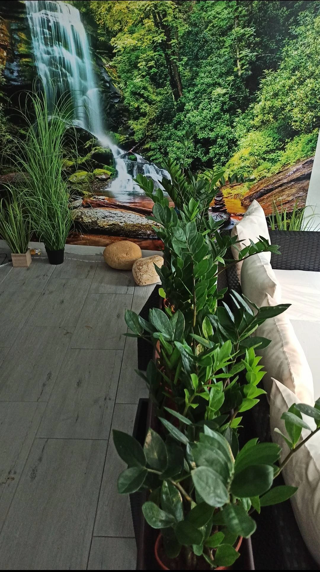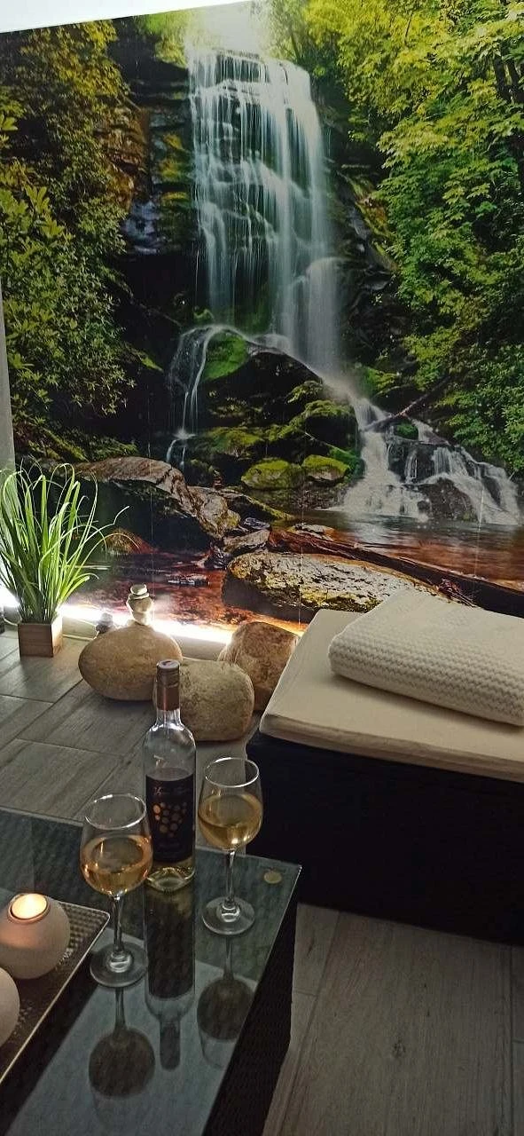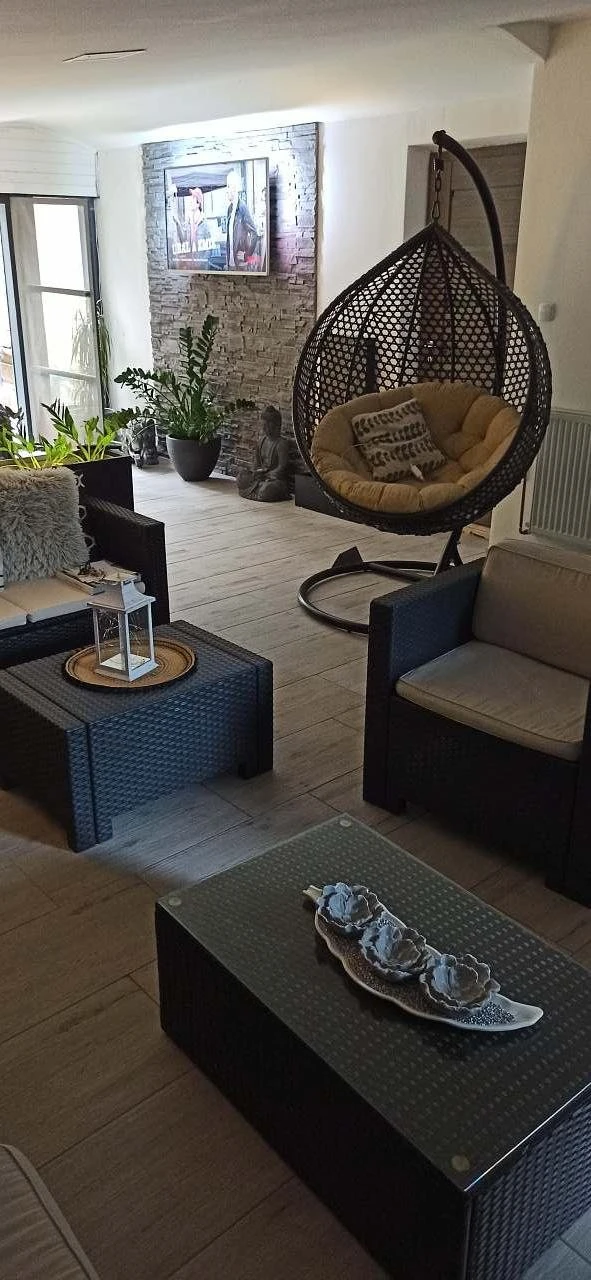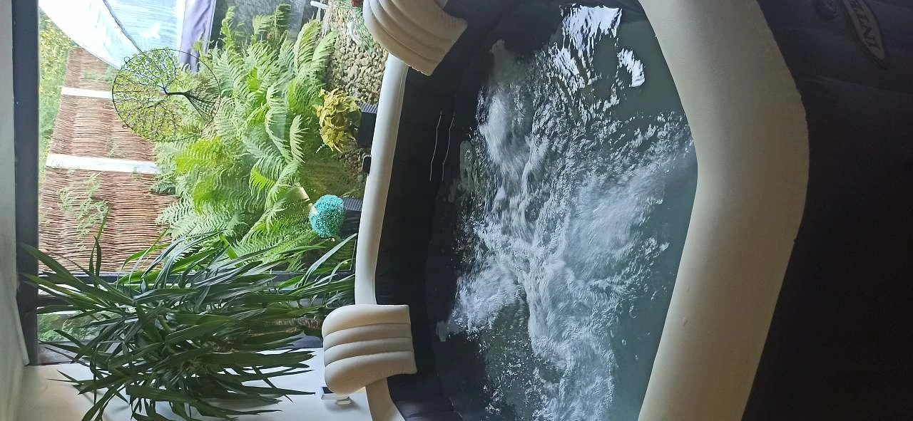 - Vířivka s masážními tryskami, závěsný houpací koš, elektrický krb