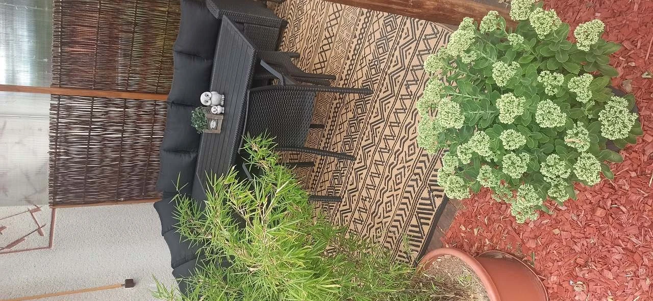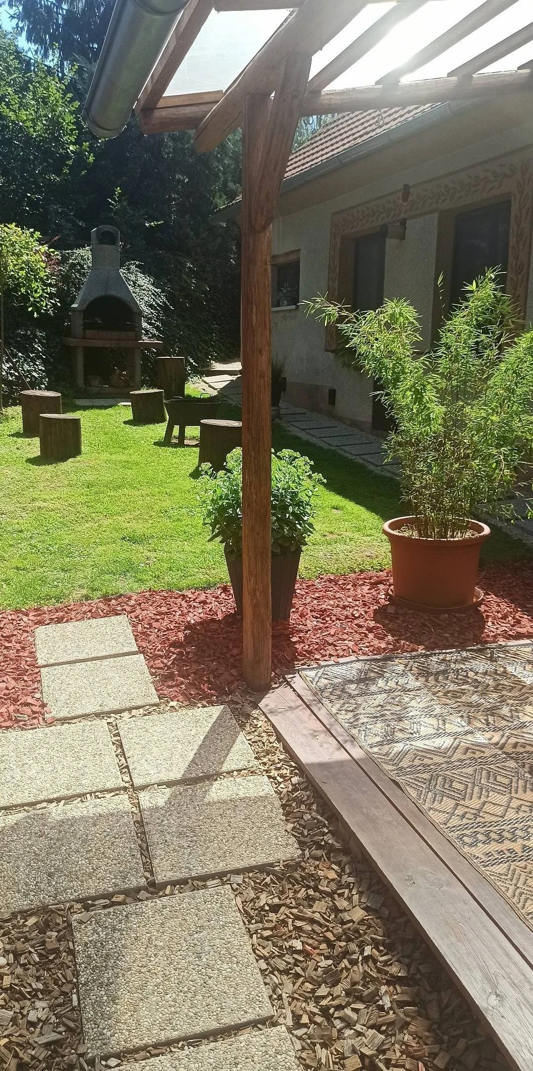 - Propojení s venkovní zastřešenou terasou se stolem a lavicemi