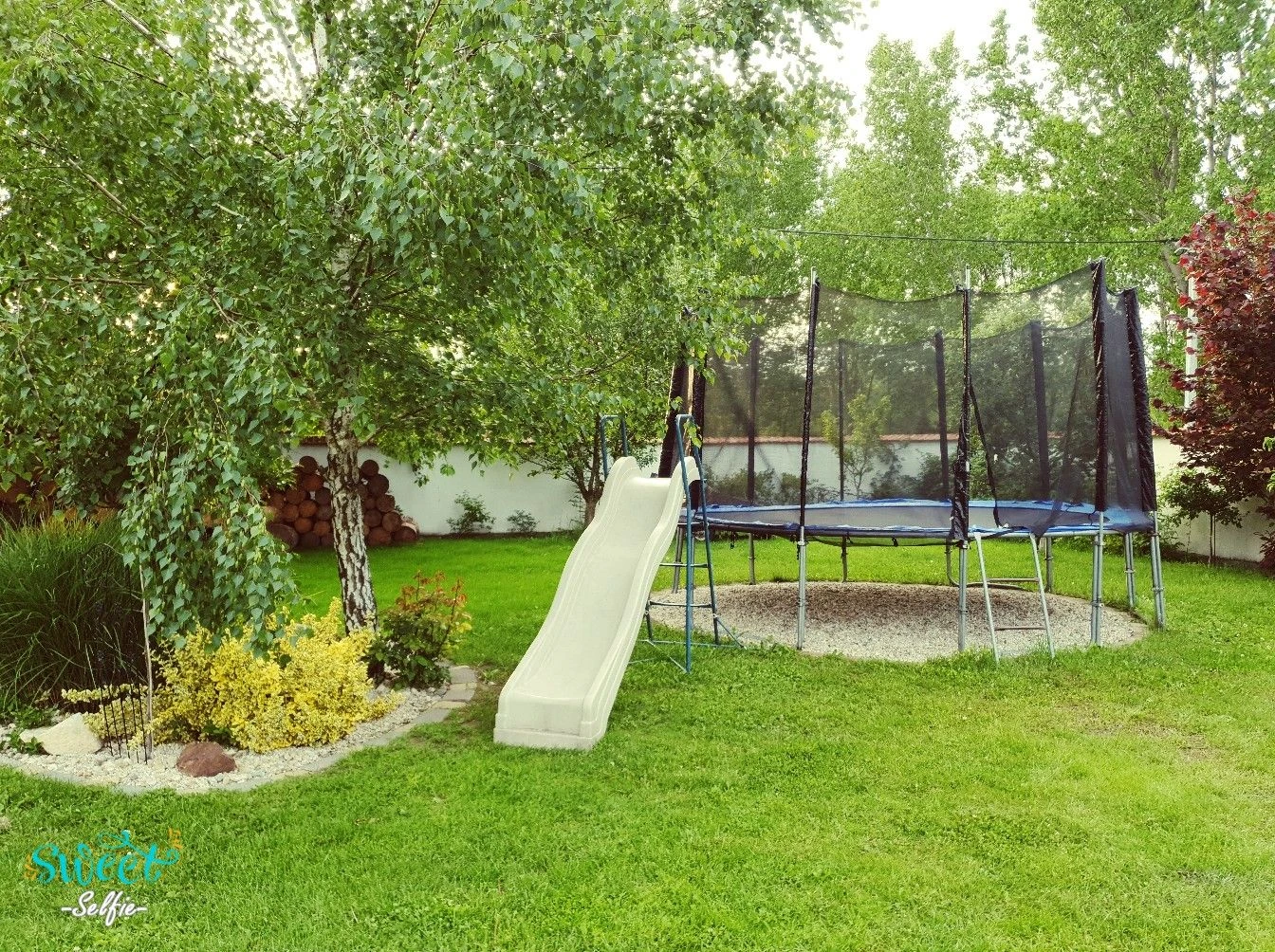 - Dětský koutek, houpačka, skluzavka, trampolína