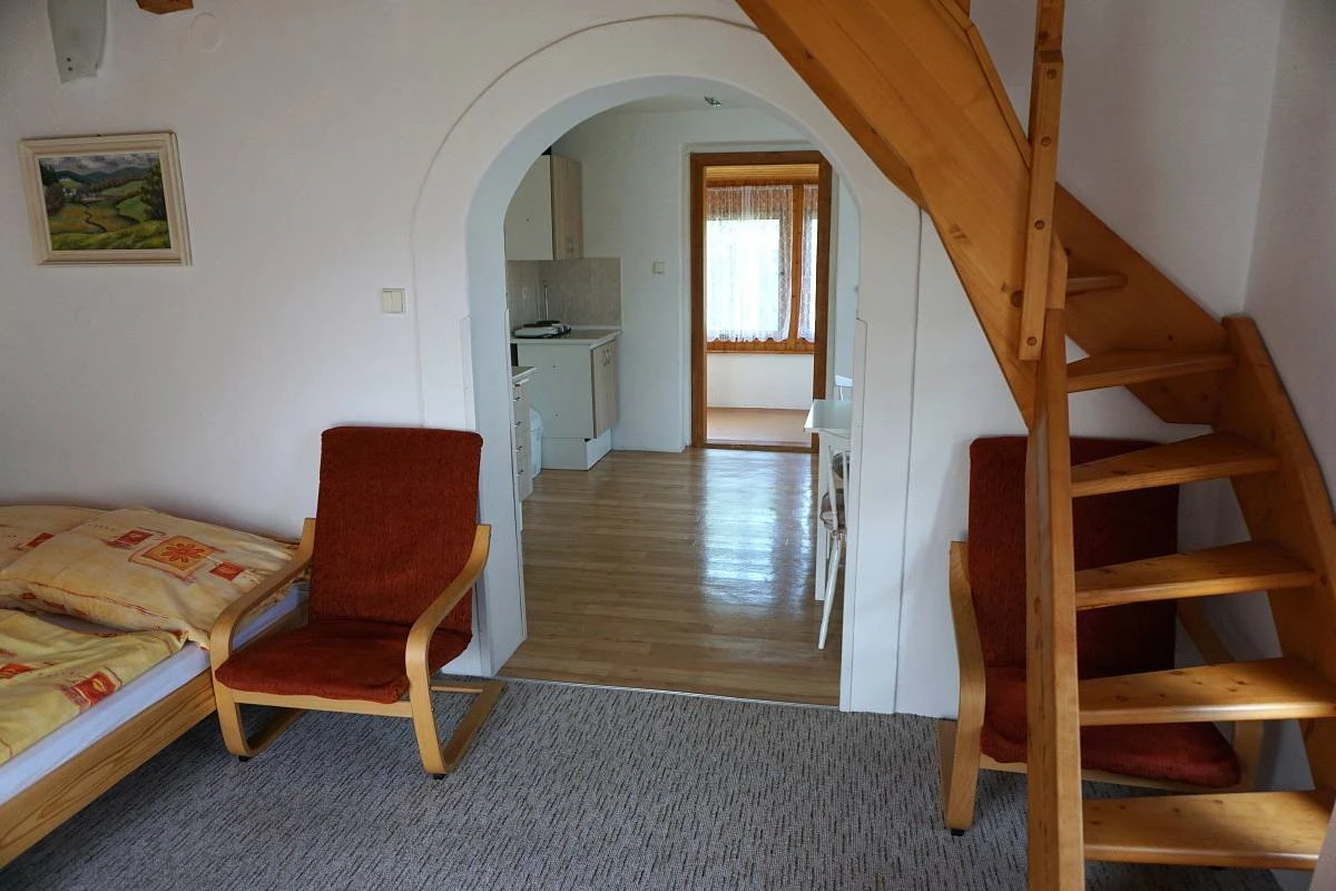 Ubytování v obci Zdíkovec na území Šumava je řešeno jako samostatný objekt s praktickým vnitřním uspořádáním. K dispozici je podkrovní ložnice se 2 lůžky a přistýlkou a obývací pokoj s dvojlůžkem, který zároveň slouží jako hlavní společný prostor. Součástí vybavení je televize se satelitním příjmem a Wi-Fi připojení.