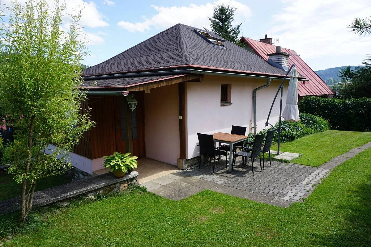 Součástí venkovního vybavení je zahrada, venkovní posezení se slunečníkem, zahradní nábytek, venkovní gril a krb. Objekt je vhodný pro rekreační pobyty s možností vlastního vaření a využití venkovního prostoru.