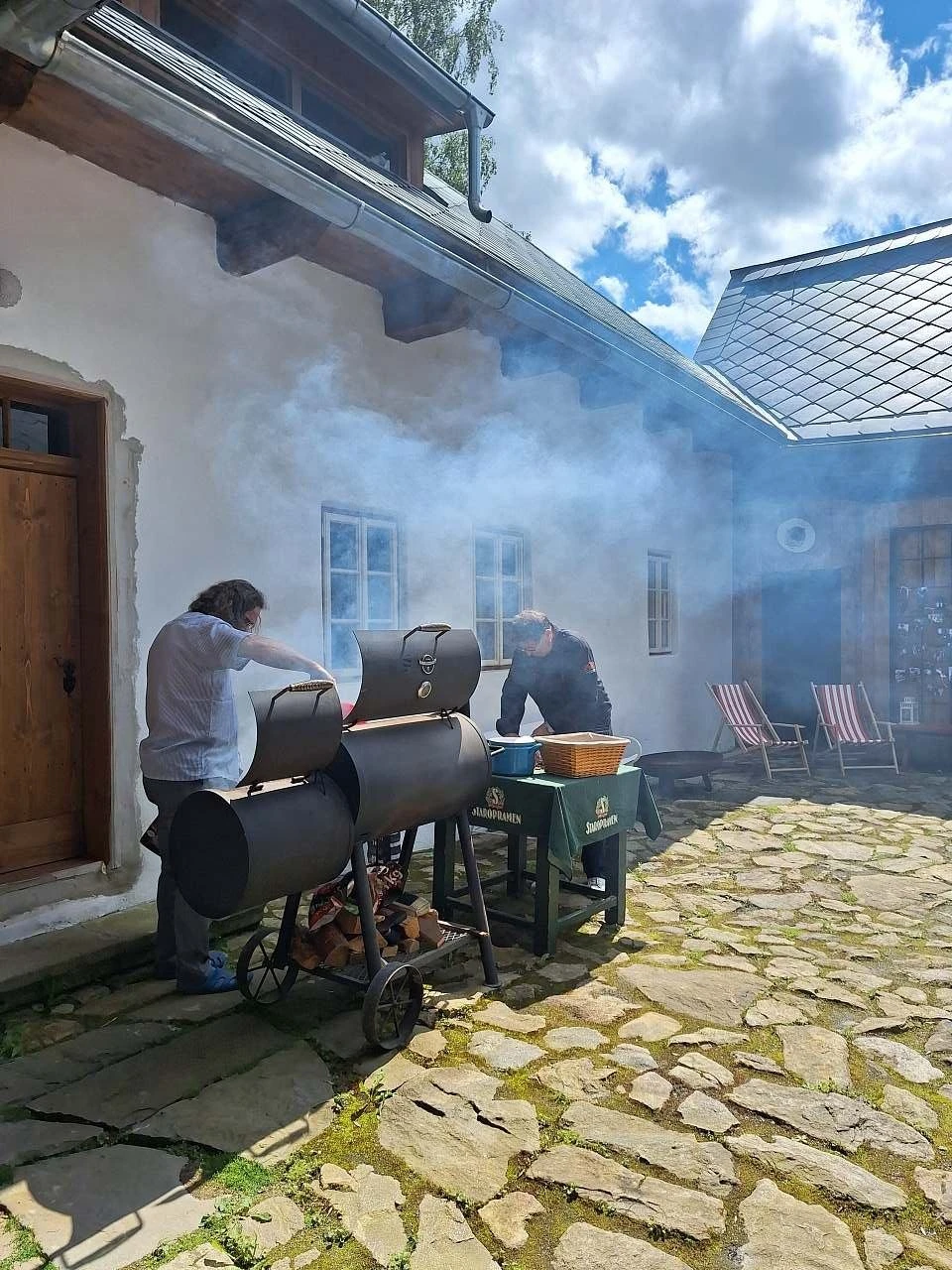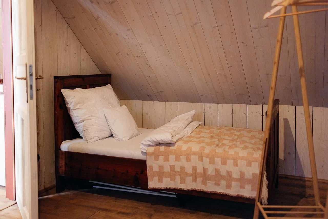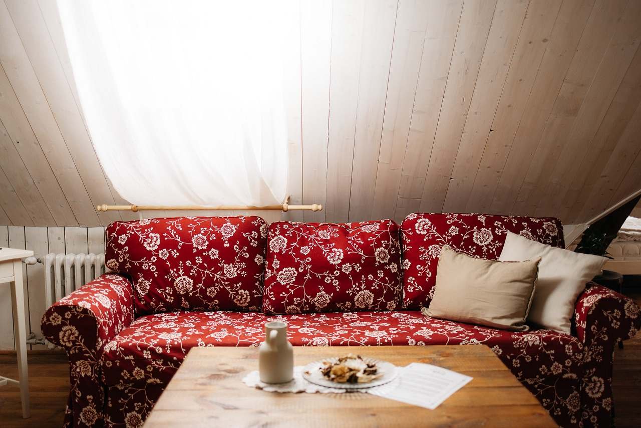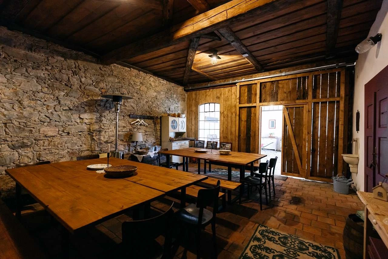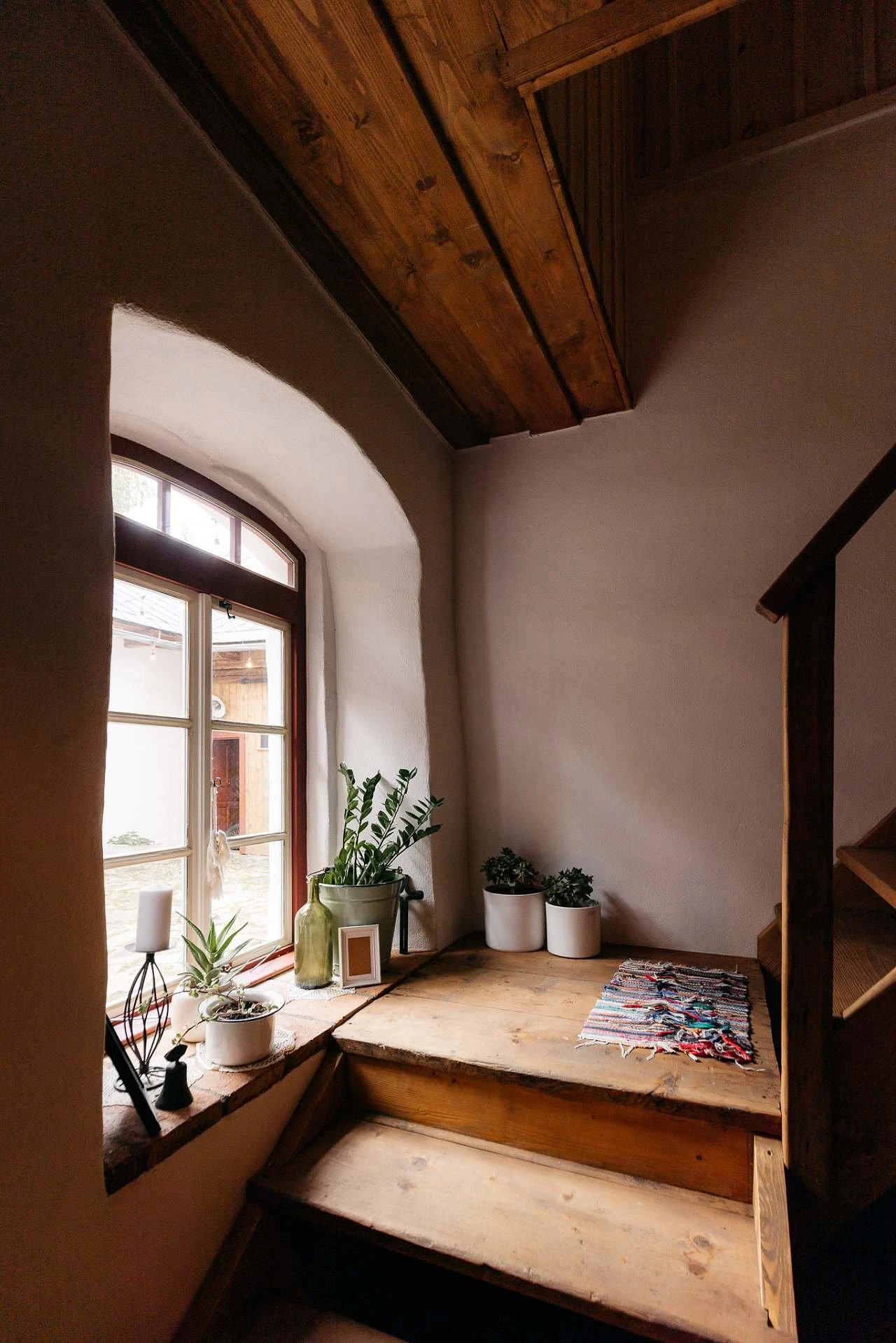 Apartmán Nad vratyKapacita: 6 lůžek + 2 přistýlkyLožnice: 1Vybavení apartmánu:Vstupní chodbaKoupelna se sprchovým koutem a WCSpolečný prostor pro 6 osob (+2 na přistýlce)Historické postele s polštáři a dekamiNoční stoly se lampamiStřešní okna zajišťující přirozené světloDřevěné skříně a komody s dostatkem úložného prostoruMalý stůl se dvěma židlemiKnihy k dispoziciDekorace a styl:Rustikální nábytekRučně vyšívané ubrusy, svíčky, obrázky na stěnáchTeplé barevné odstíny stěn a textiliíKoupelna:Moderní sprchový koutStarožitné prvky a zrcadlo kombinující rustikální a moderní styl
