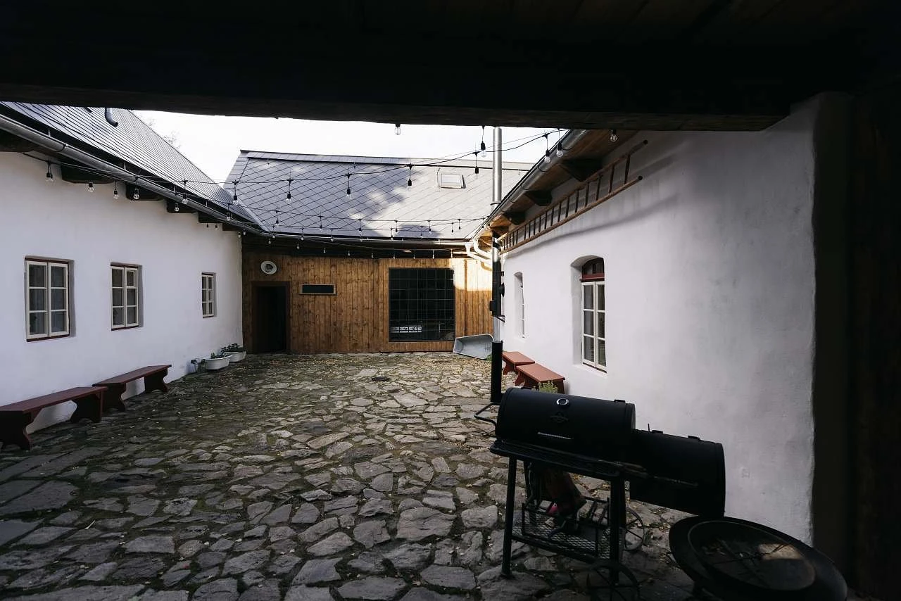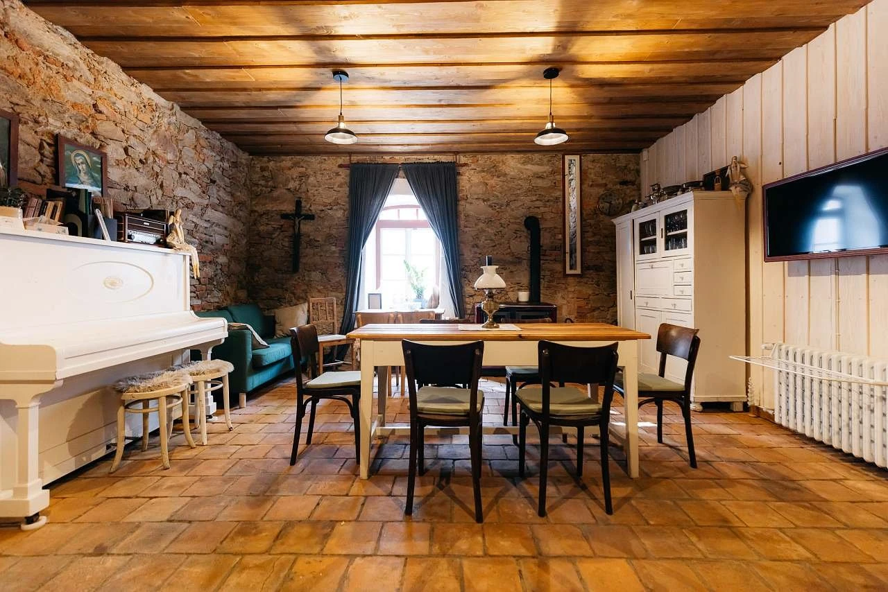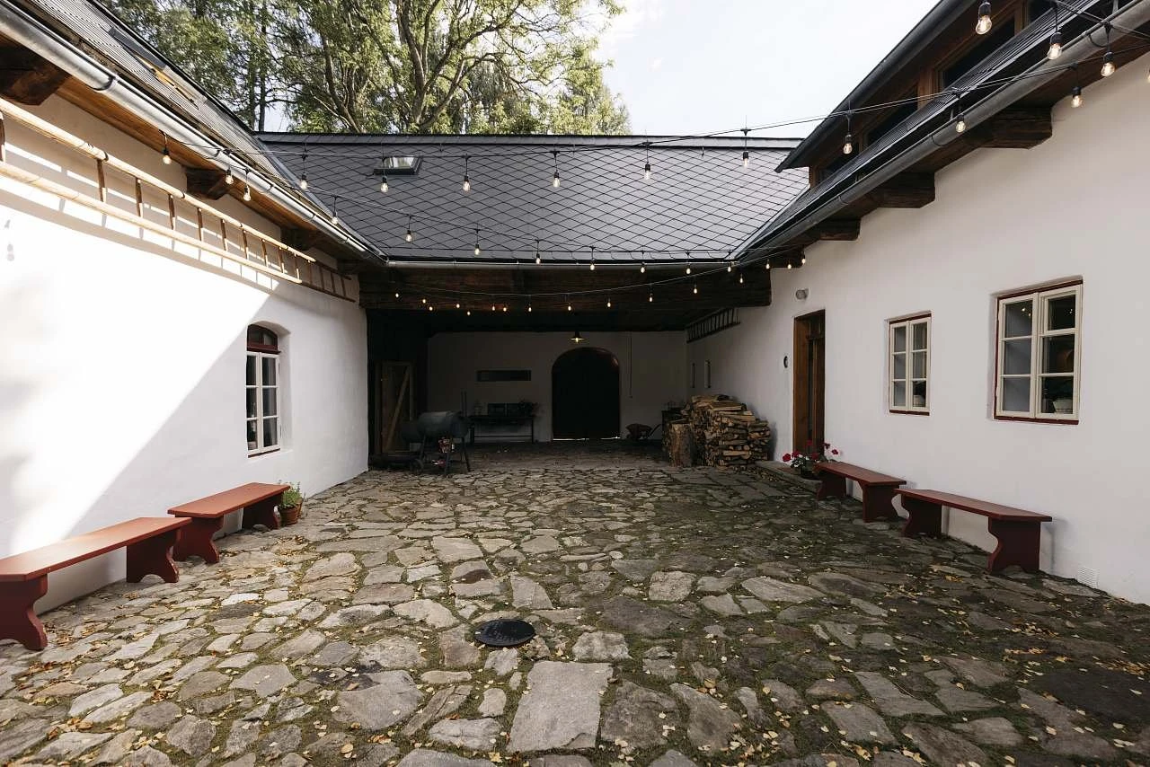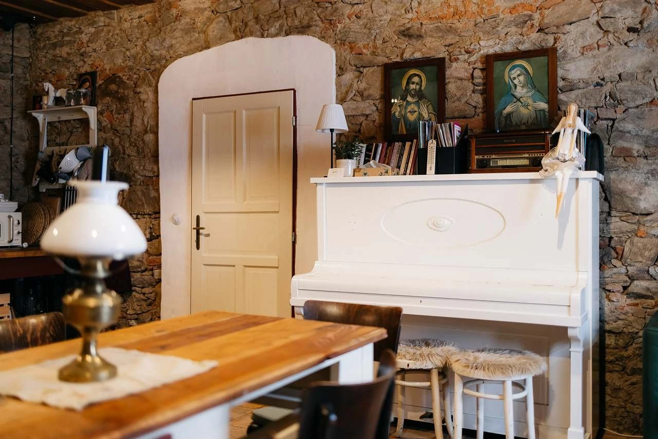 Apartmán U potokaKapacita: 6 lůžek + 2 přistýlkyLožnice: 1Apartmán nabízí:Vstupní chodbuKoupelnu se sprchovým koutem a WCSpolečný prostor pro 6 osob (+2 na přistýlce)V hlavní místnosti jsou:Historické postele s polštáři a dekamiNoční stoly se lampamiDostatek úložného prostoru díky dřevěným skříním a komodámStřešní okna, která prosvětlují interiérMalý stůl se dvěma židlemiDalší vybavení:Knihy k dispoziciRučně vyšívané ubrusy, svíčky, dekorace na stěnáchTeplé barevné odstíny na stěnách a textiliíchKoupelna:Moderní sprchový koutStarožitné prvky a zrcadlo kombinující rustikální a moderní styl