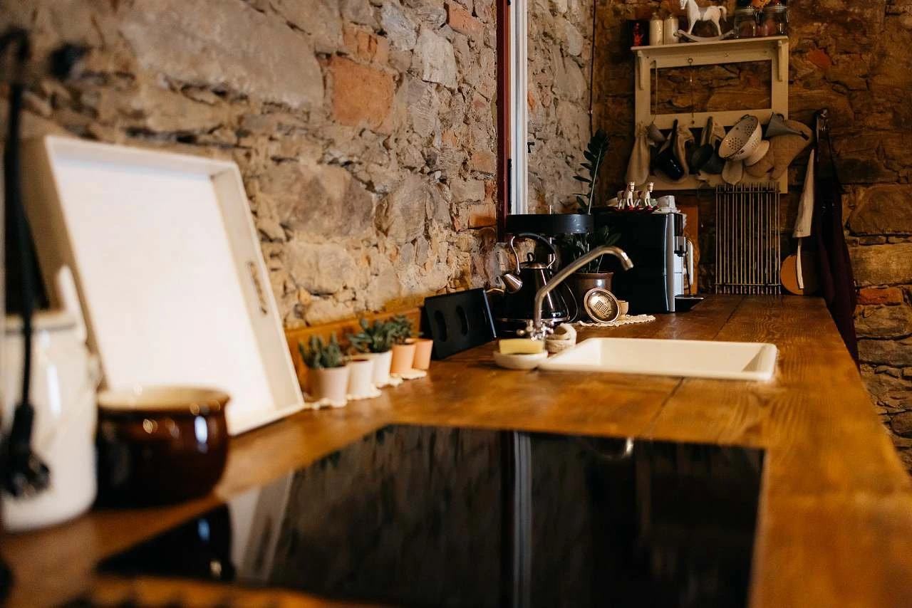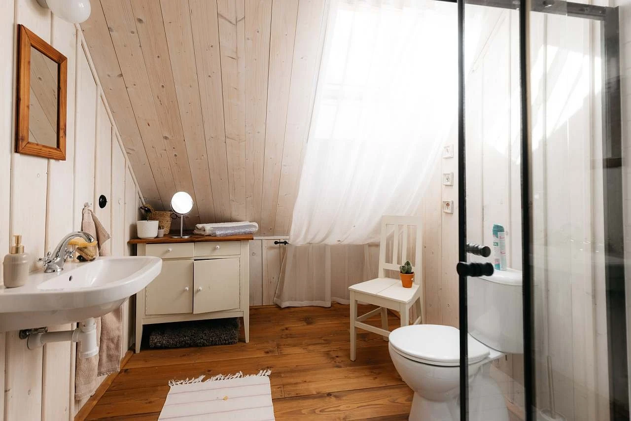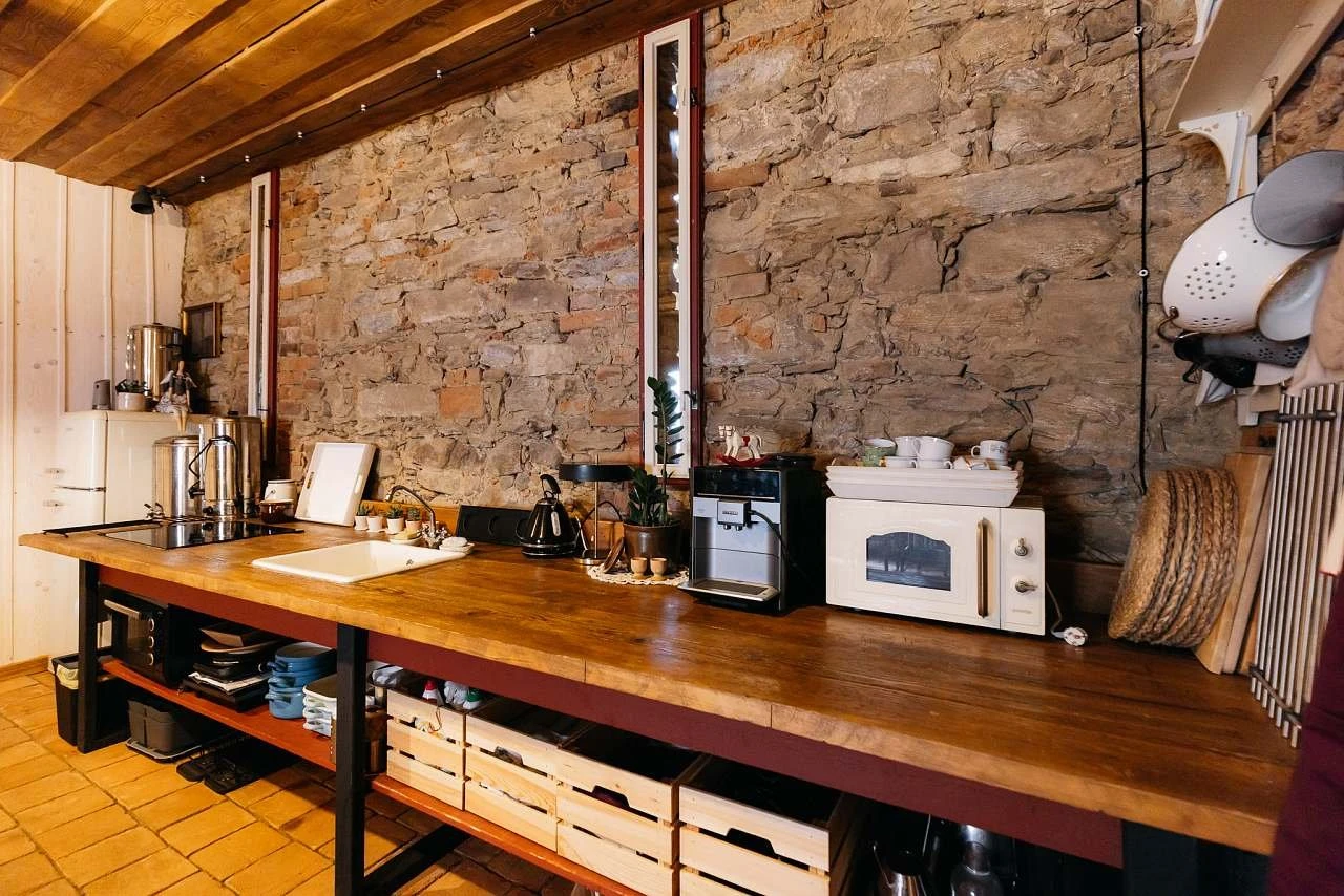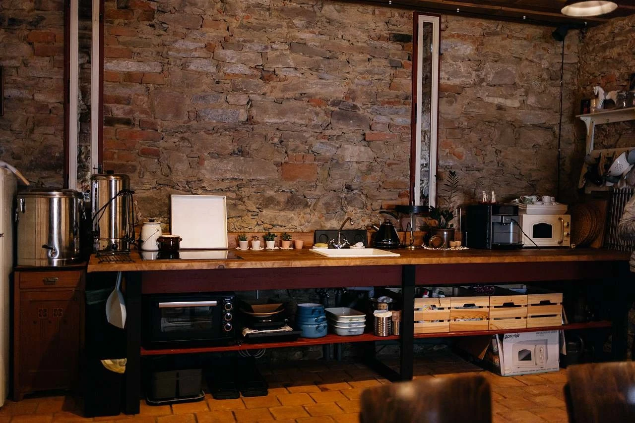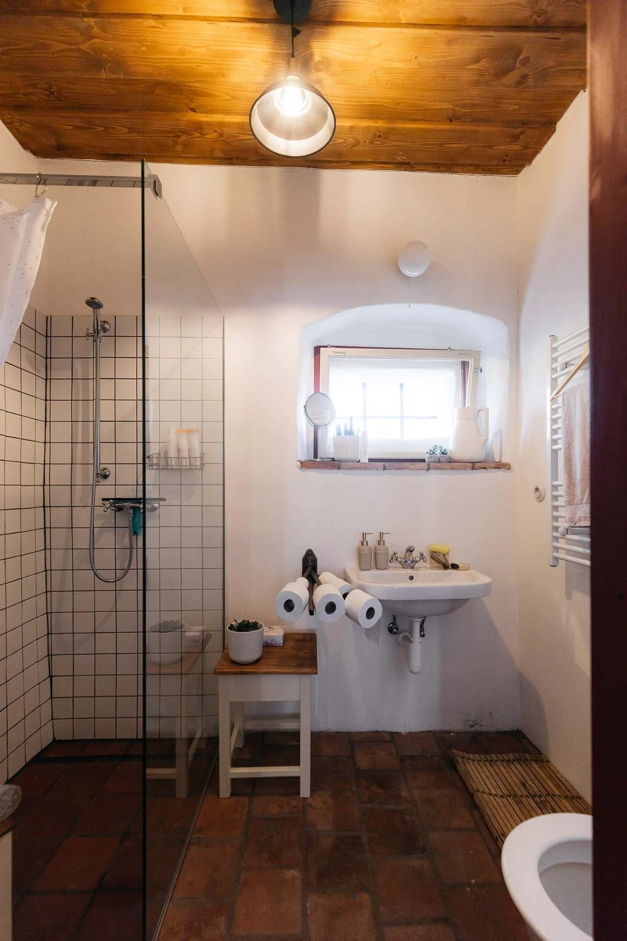 Apartmán U potokaKapacita: 6 lůžek + 2 přistýlkyLožnice: 1Apartmán nabízí:Vstupní chodbuKoupelnu se sprchovým koutem a WCSpolečný prostor pro 6 osob (+2 na přistýlce)V hlavní místnosti jsou:Historické postele s polštáři a dekamiNoční stoly se lampamiDostatek úložného prostoru díky dřevěným skříním a komodámStřešní okna, která prosvětlují interiérMalý stůl se dvěma židlemiDalší vybavení:Knihy k dispoziciRučně vyšívané ubrusy, svíčky, dekorace na stěnáchTeplé barevné odstíny na stěnách a textiliíchKoupelna:Moderní sprchový koutStarožitné prvky a zrcadlo kombinující rustikální a moderní styl