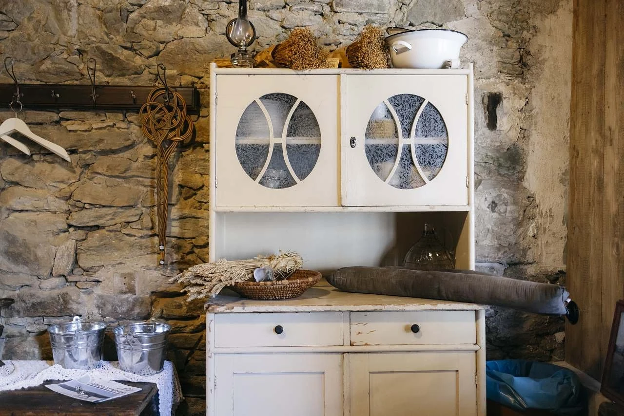 - Dostatek úložného prostoru díky dřevěným skříním a komodám
