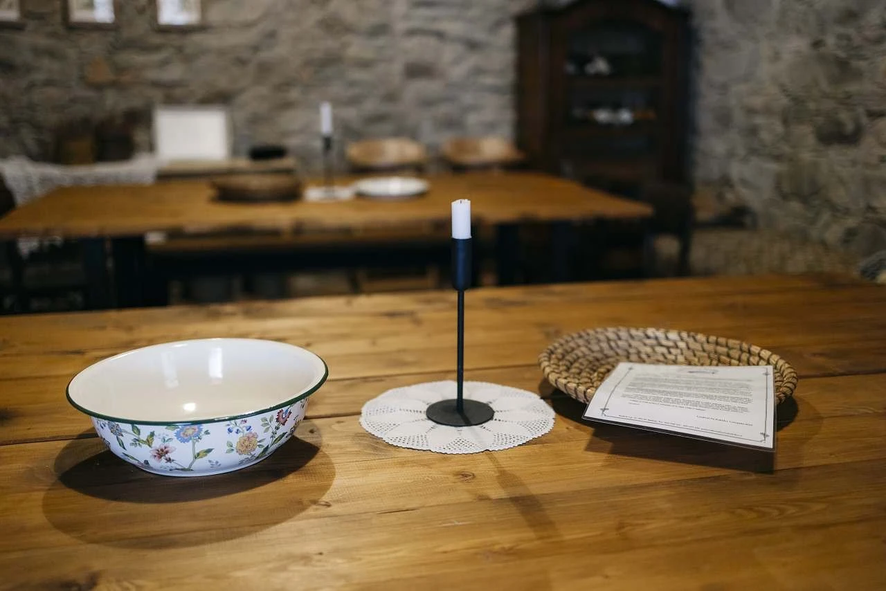 - Ručně vyšívané ubrusy, svíčky, dekorace na stěnách