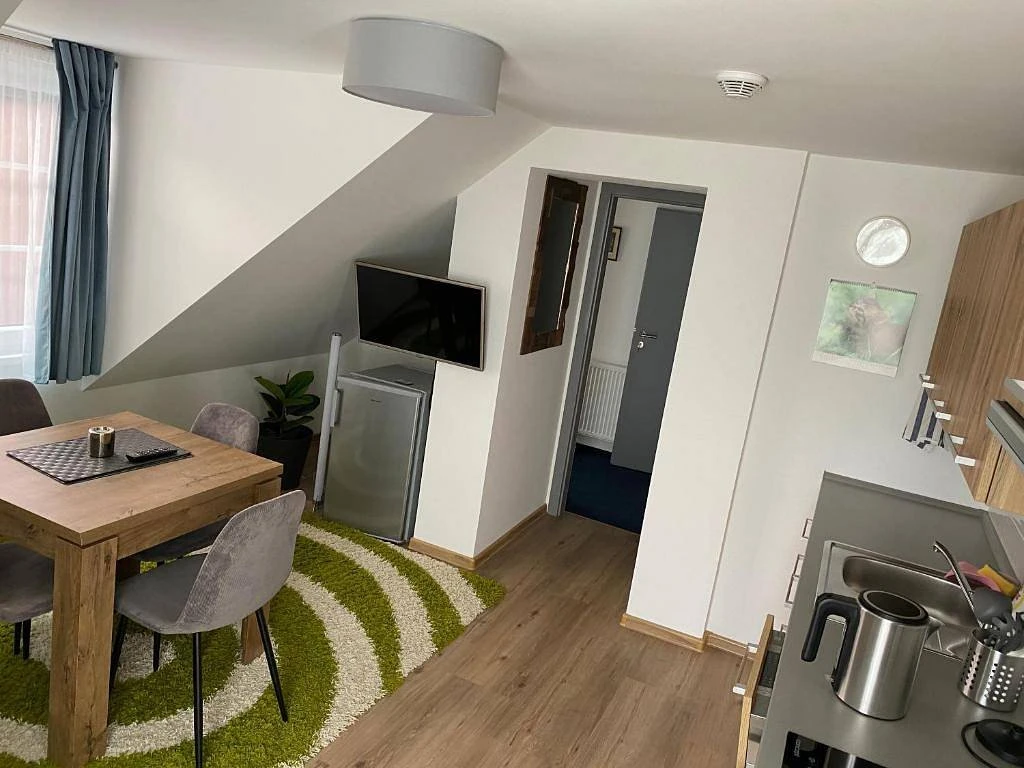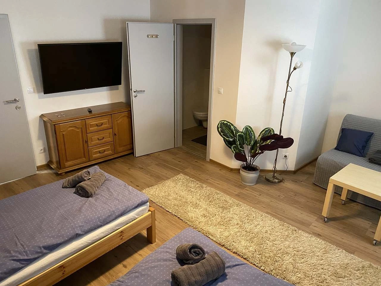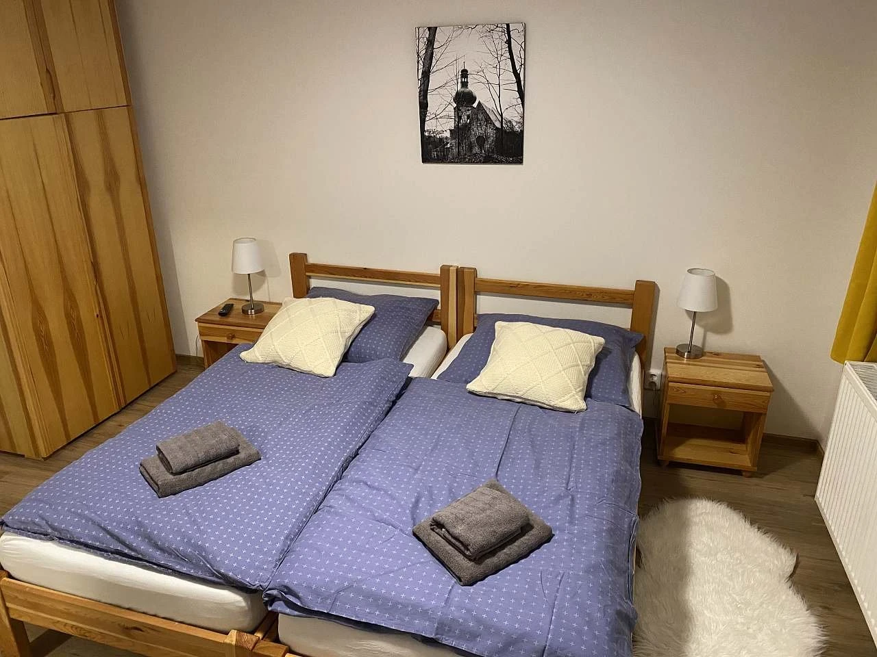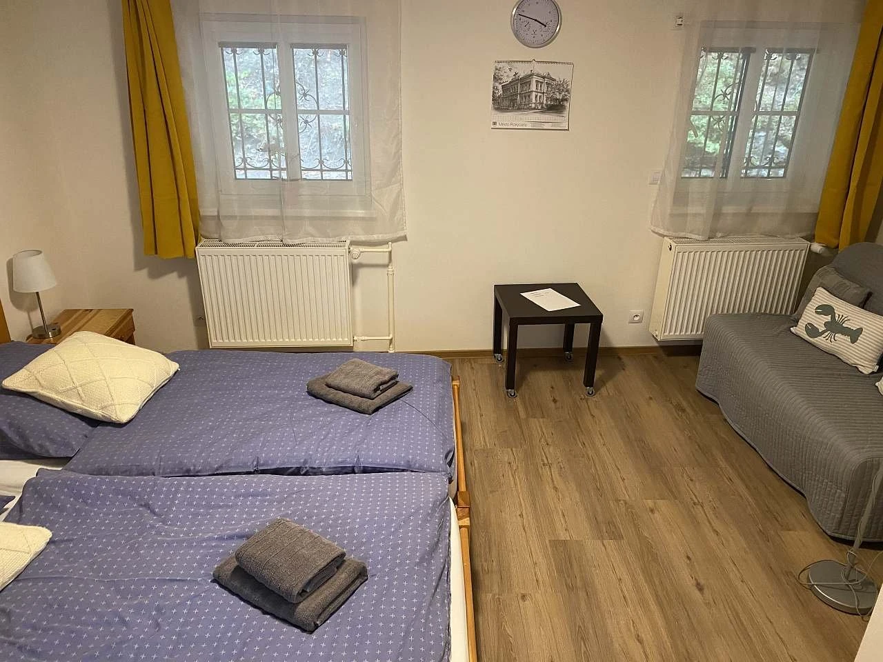 Kapacita: 2 lůžka + 1 přistýlkaPočet ložnic: 1Vybavení pokoje:Oddělitelné postele (2)Rozkládací pohovka se stolkemTelevizeKoupelna se sprchovým koutemUmístění: Pokoj situován do stínu lesa a směrem na příjezdovou komunikaci a parkovištěUrčení: Vhodný pro aktivní hosty, kteří potřebují klidný spánekSdílená kuchyň:Lednička, myčka, pračkaAutomat na kávu Dolce Gusto (kapsle k zakoupení)Stůl se židlemi ke konzumaci vlastních pokrmůPoužití kuchyně do 22:00 z důvodu nočního kliduKategorie: Jednodušší vybavení odpovídající turistické třídě, nižší standard než apartmány