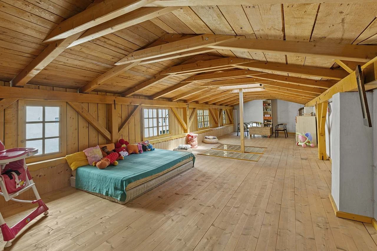 - Podkrovní apartmán: velká koupelna se sprchovým koutem a toaletou