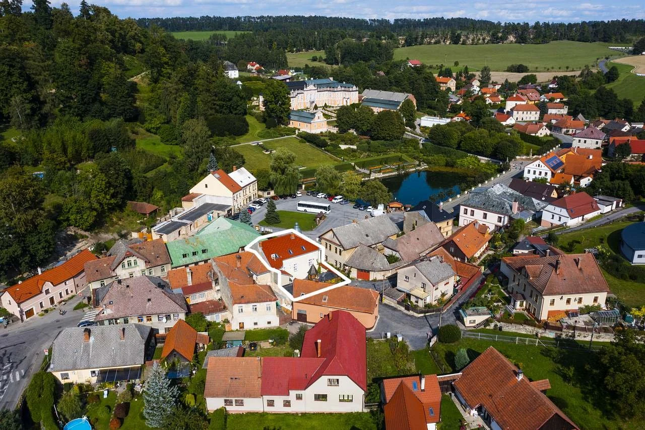 - Parkování: přímo u brány domu (2 místa) nebo na obecním parkovišti; možnost vzdálenějšího parkování u kostela
