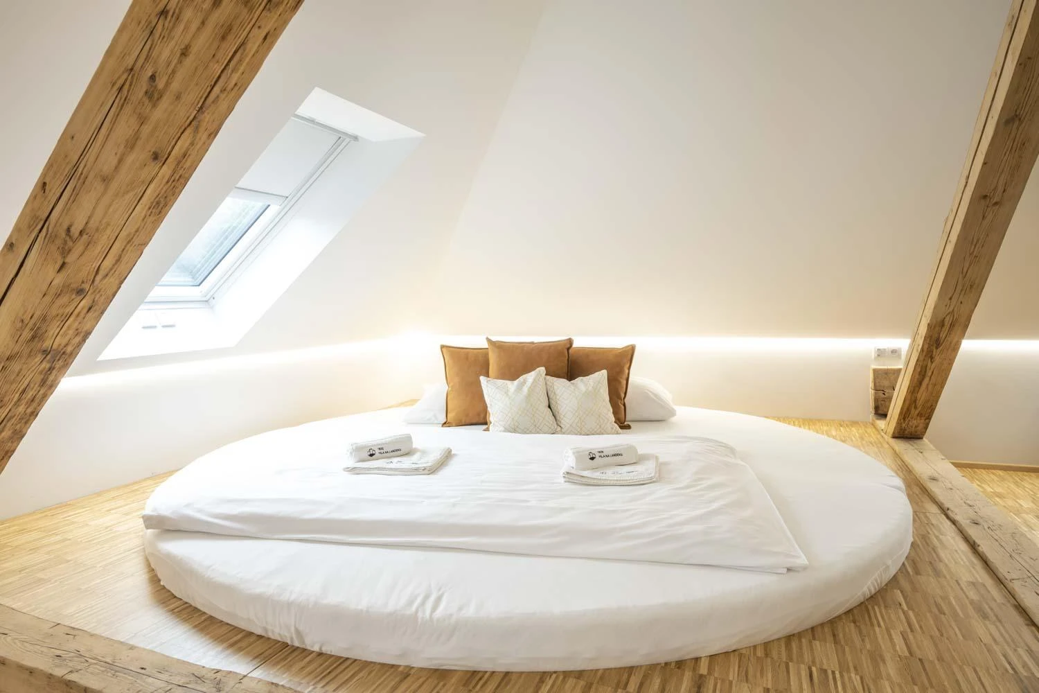 - Rothschild: Nejluxusnější apartmán (120 m²) pro 2 osoby s privátní terasou, kruhovou postelí, koženým posezením, masivním dřevěným stolem a volně stojící vanou. Vybaven chytrou domácností Loxone, reprosystémem Dexone a televizí s videotékou HBO. K dispozici je plně vybavená kuchyň a koupelna.