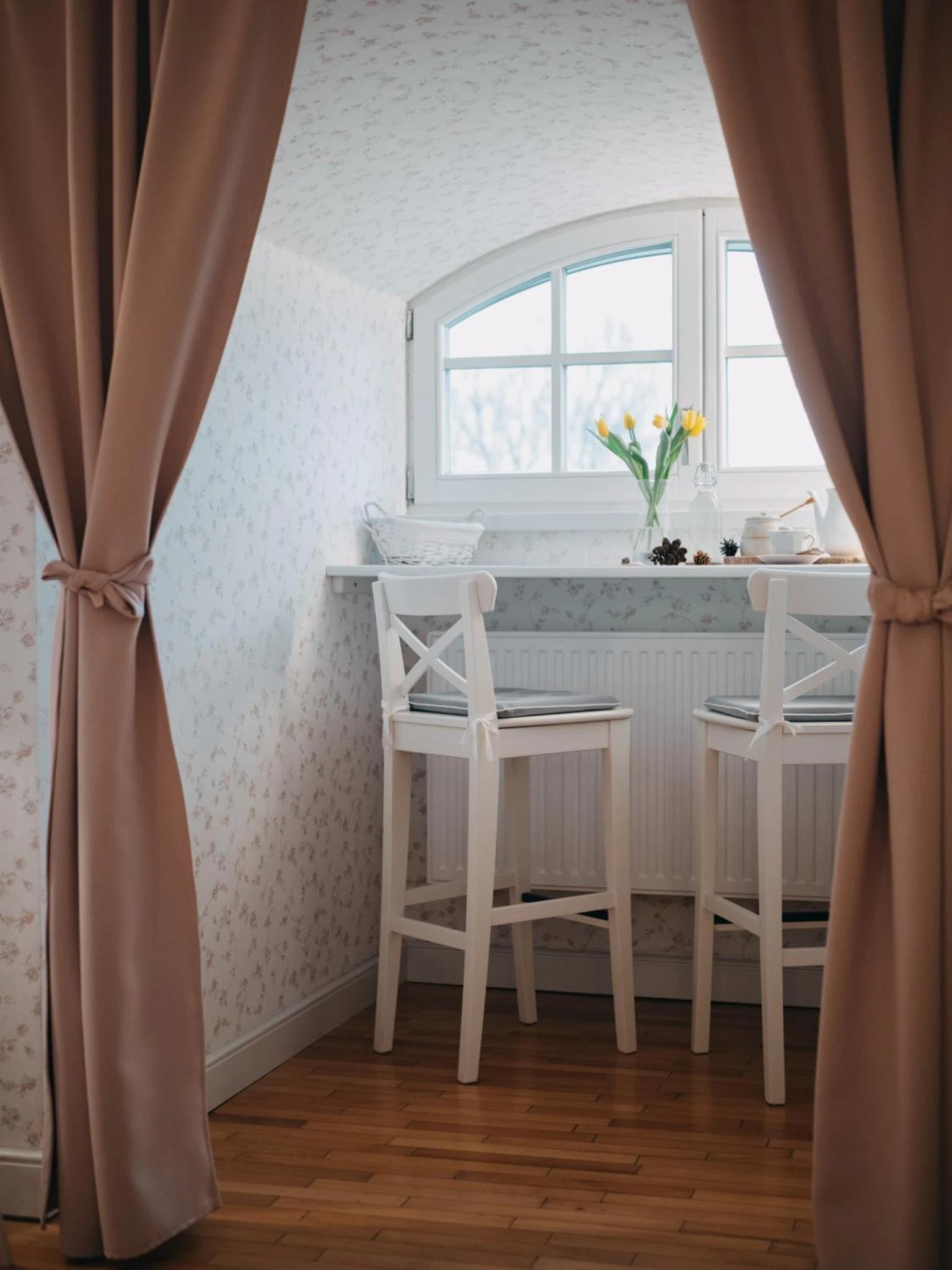 - Beauty: Podkrovní dvoulůžkový pokoj (26 m²) s manželskou postelí, koupelnou se sprchovým koutem a barovým posezením v podkrovním výklenku. K dispozici je vybavení pro přípravu kávy a čaje.