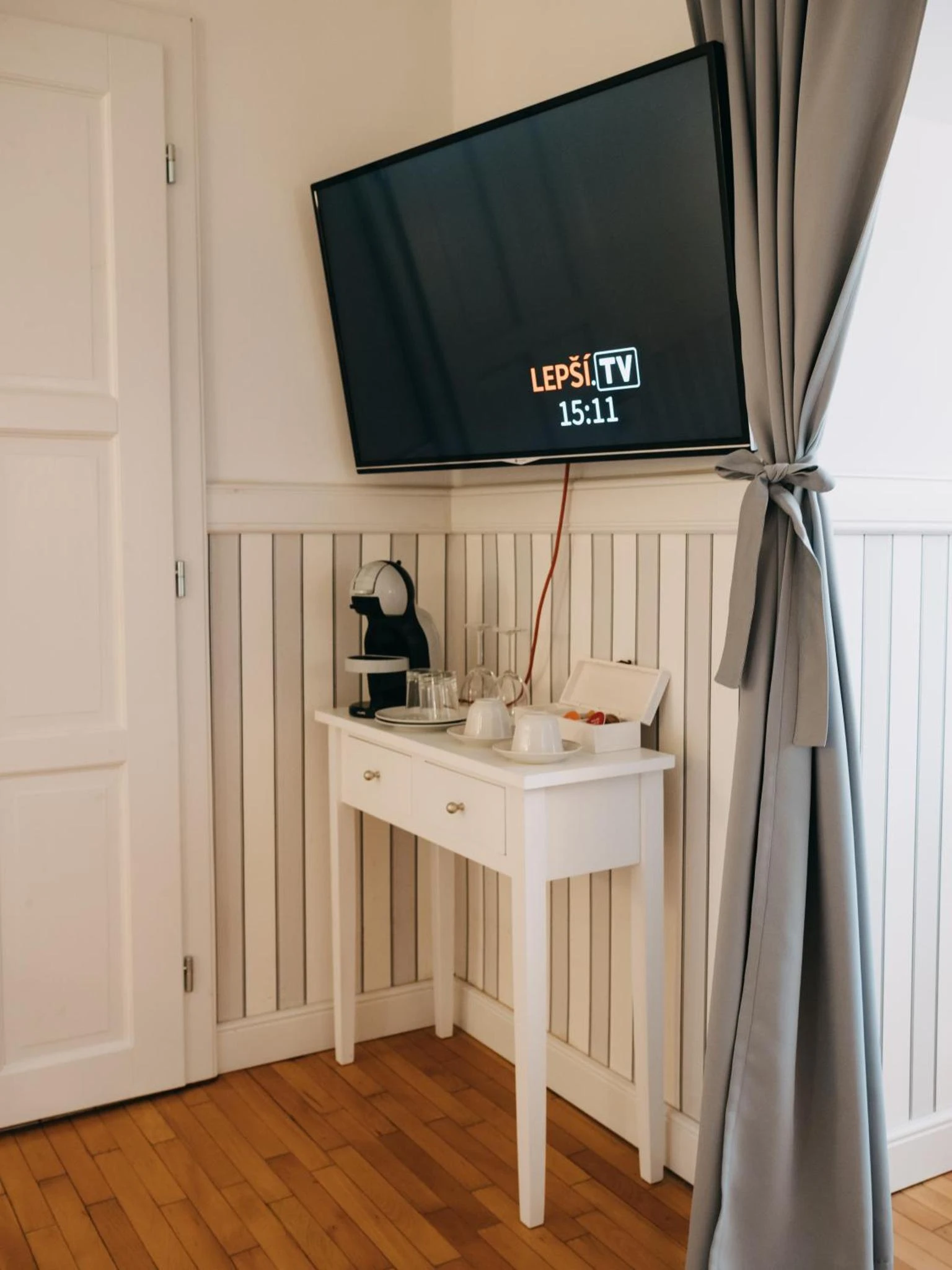 Pokoj nabízí Wi-Fi, sprchu, WC, pračku, kosmetické a toaletní potřeby, osušky a ručníky, internetovou televizi Lepší.TV, fén, ledničku s minibarem, kávovar Dolce Gusto a čajový servis. K dispozici je také rychlovarná konvice. Mezi další vybavení patří elektro nabíječka na auto a hlídané parkování. Hosté mají možnost zajištění snídaně. Celková plocha pokoje je 30 m².