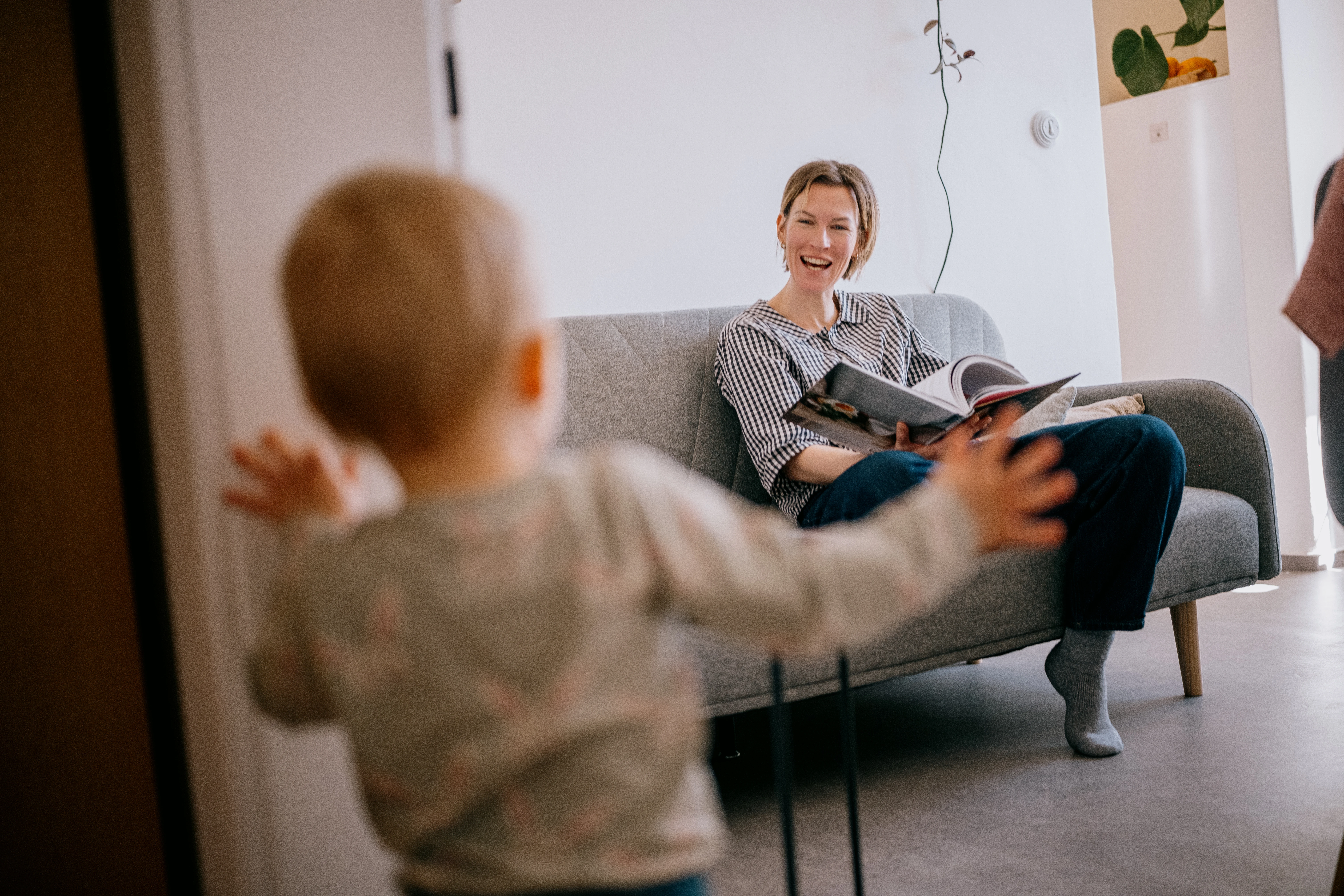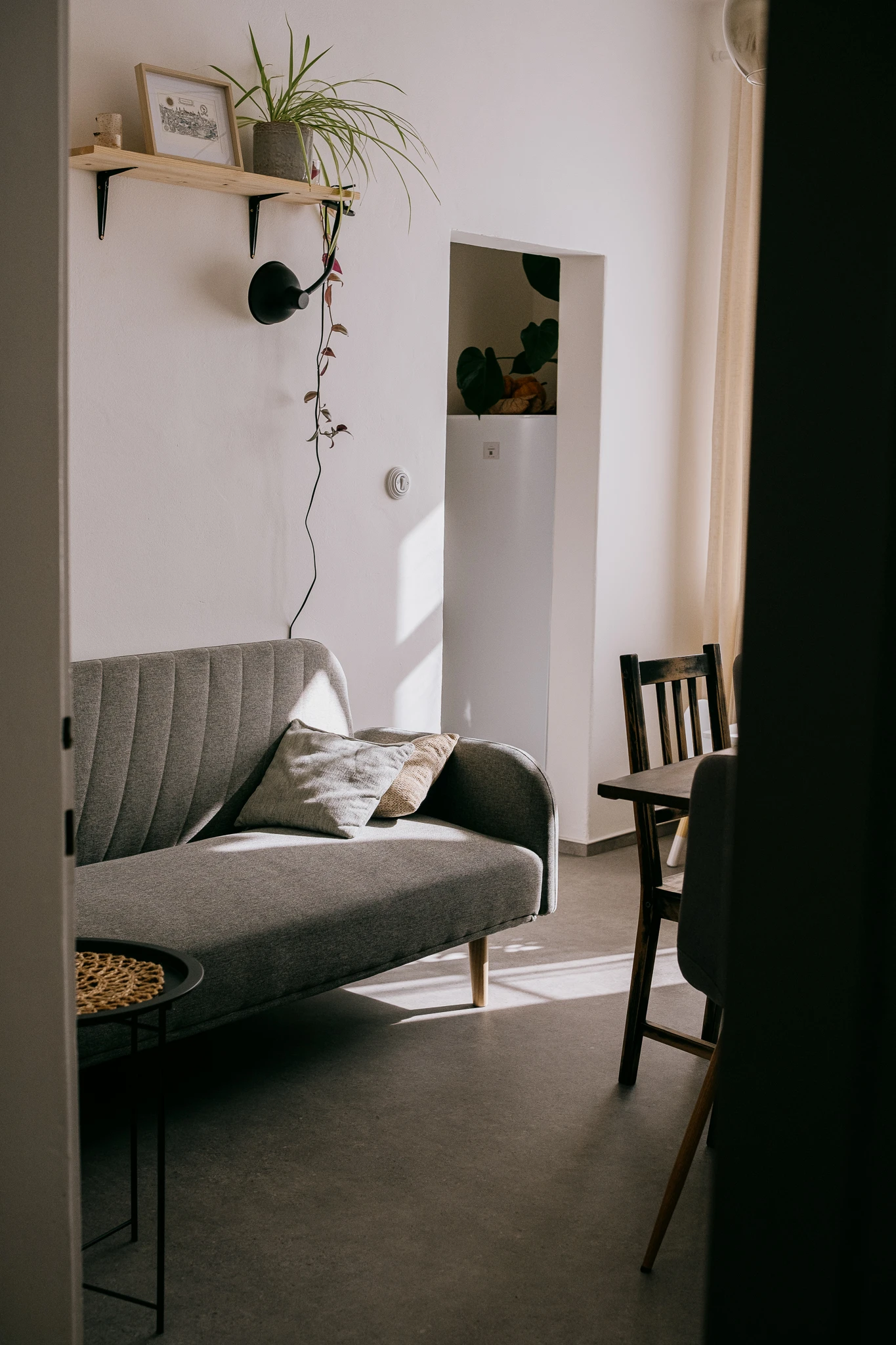 - Předsíň a jídelna: prostorná předsíň, stůl a gauč, prostor pro dětský koutek, knihy, stolní hry a jógové podložky.