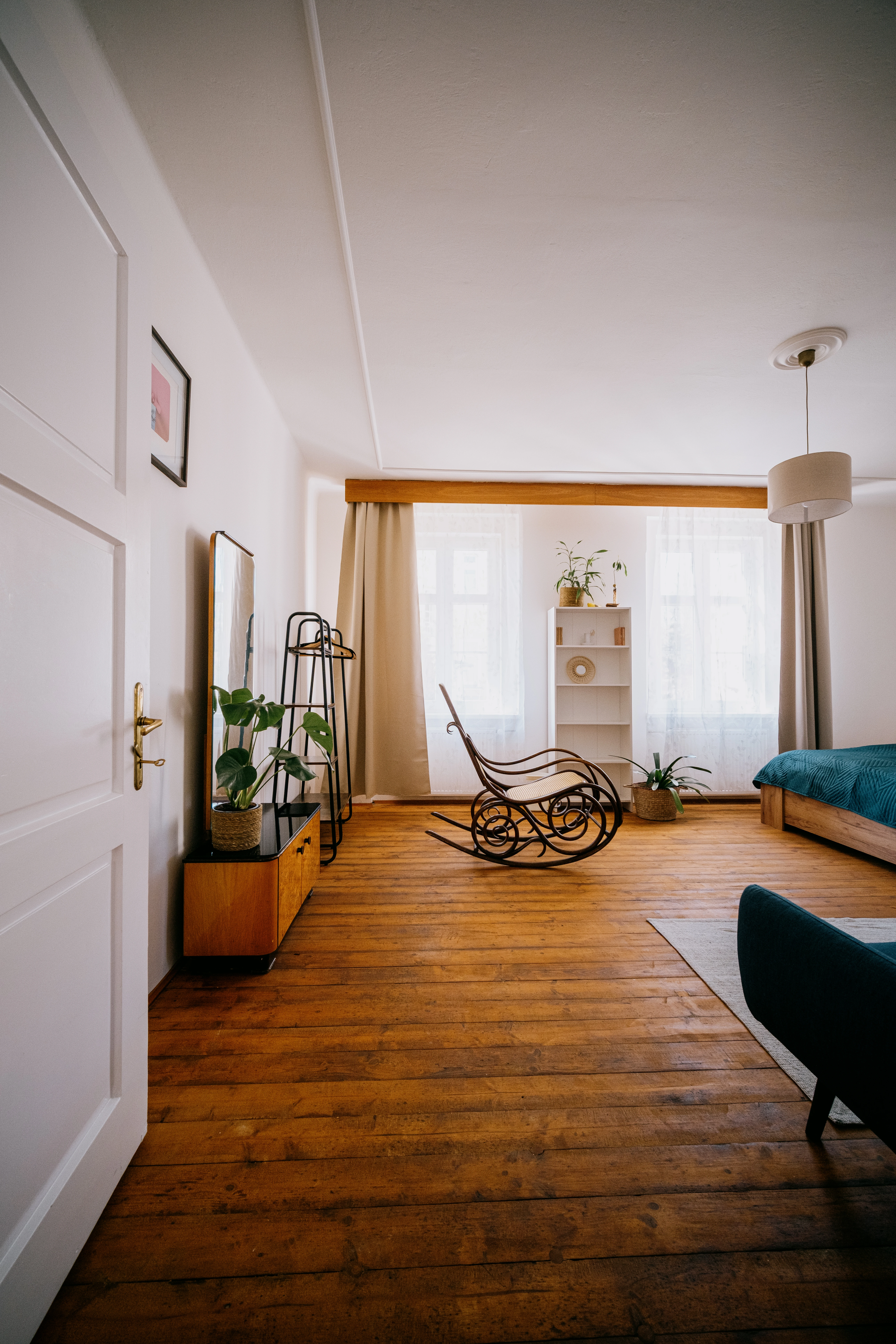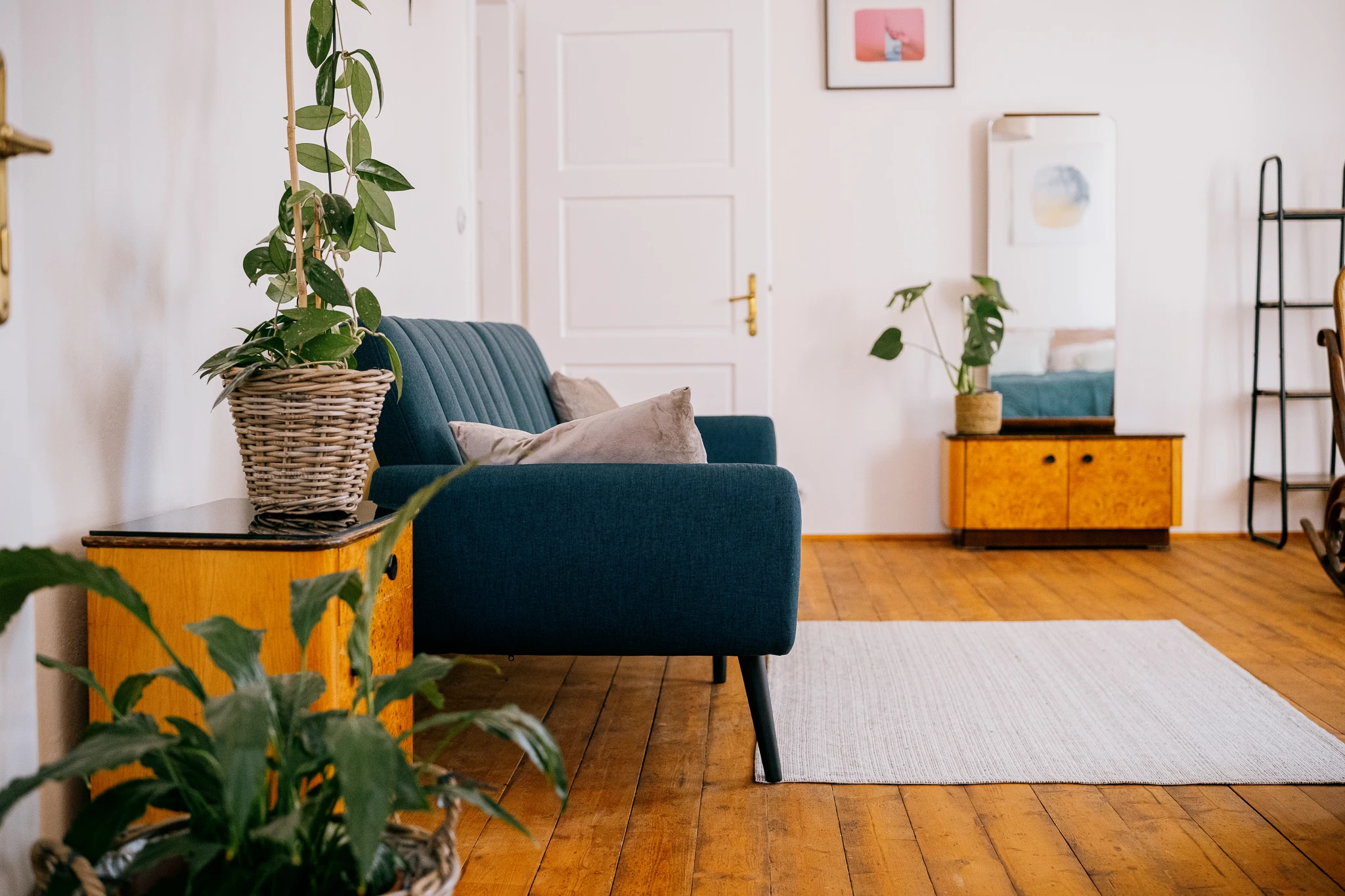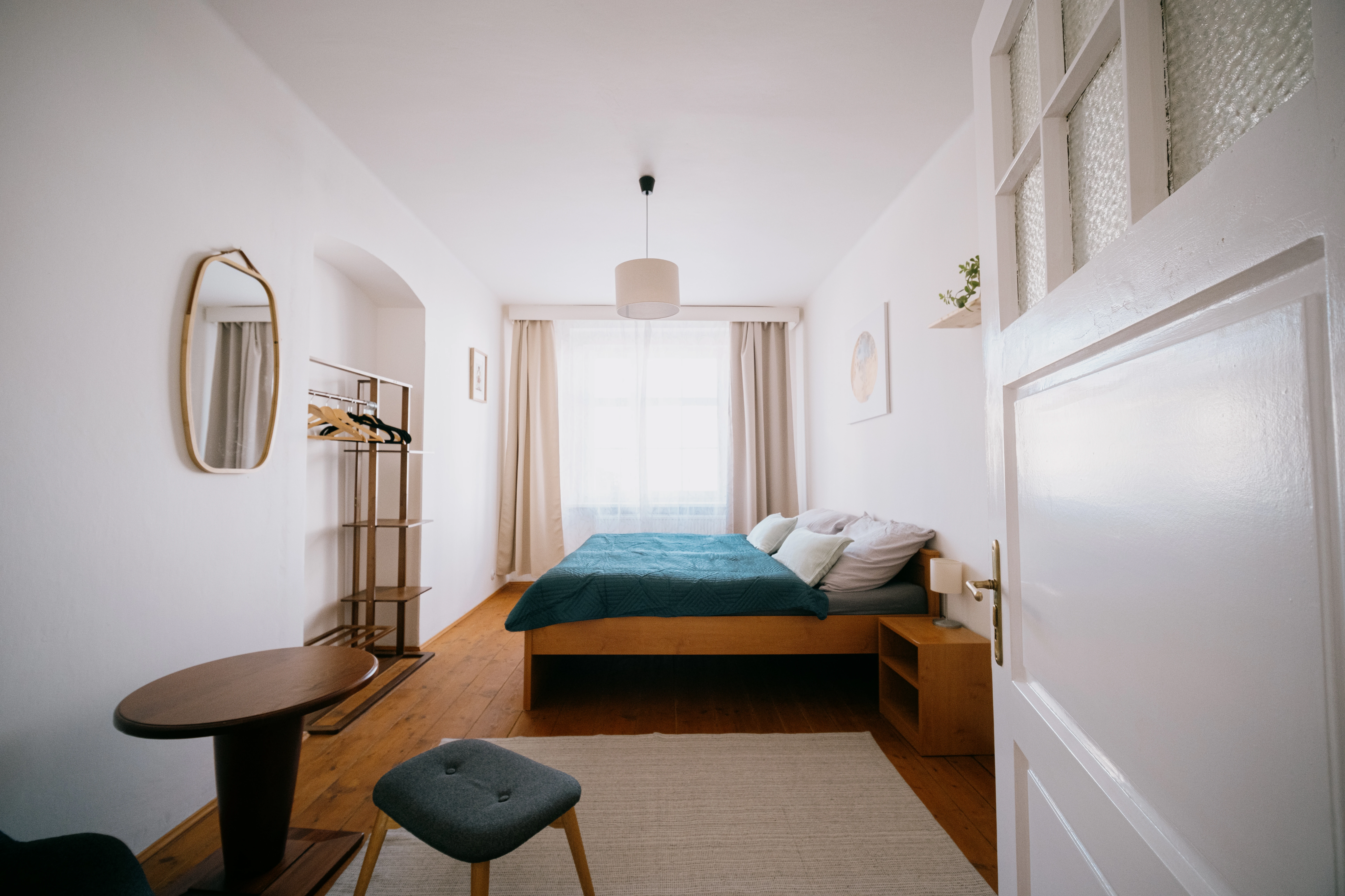 Byt je vybaven pro pohodlný pobyt, umožňuje vaření vlastních jídel a poskytuje soukromí a klid. Interiér zahrnuje dřevěné podlahy, nový i upcyklovaný nábytek a obrazy českých umělců.