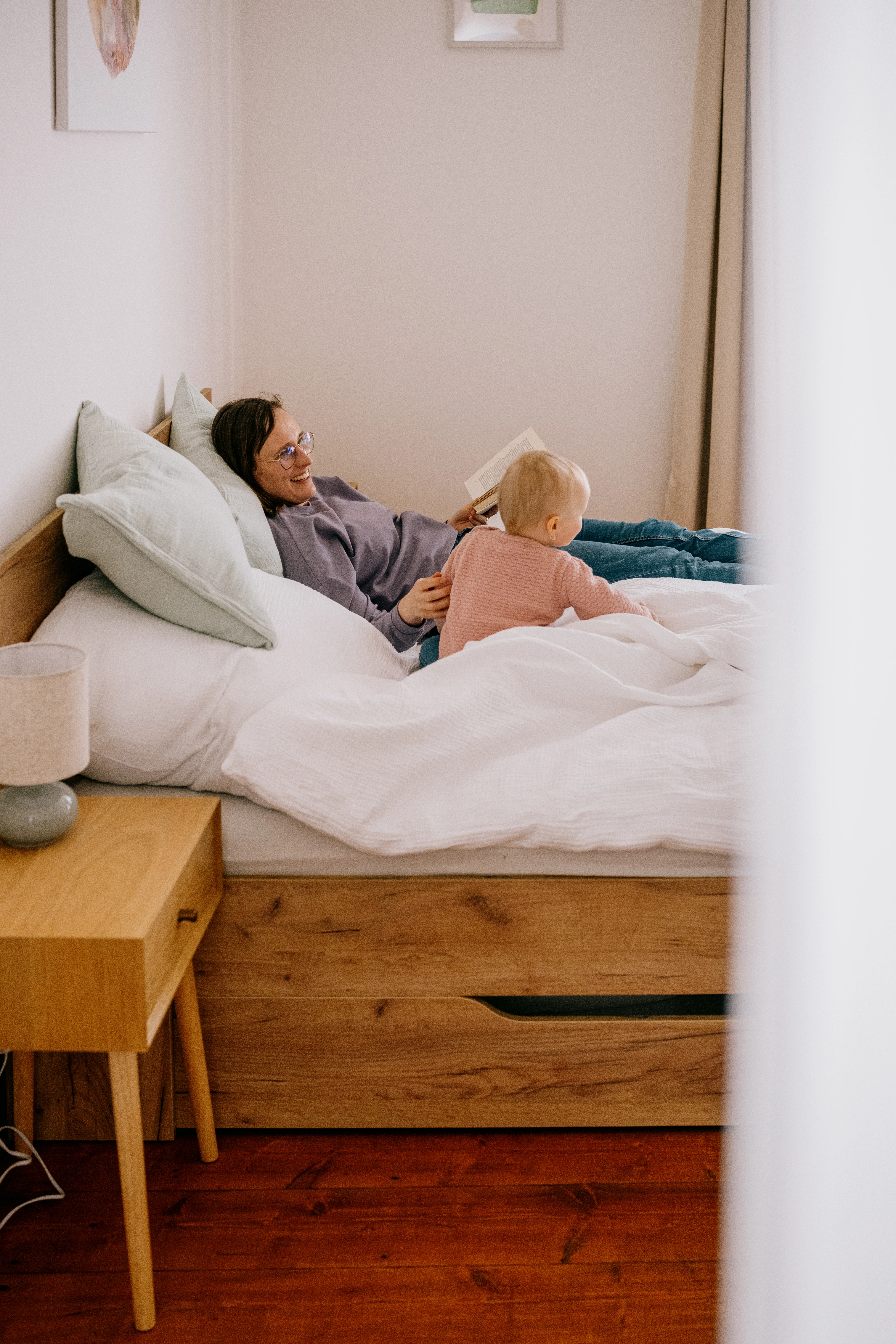 Ložnice 2 disponuje manželskou postelí a rozkládacím gaučem pro přistýlku a má přístup na verandu. Veranda slouží jako relaxační koutek v zeleni, zve vás do světa Malého Prince díky animovaným obrazům od Elišky Podzimkové. Do futer na verandu lze na vyžádání zavěsit hojdavak pro miminko.