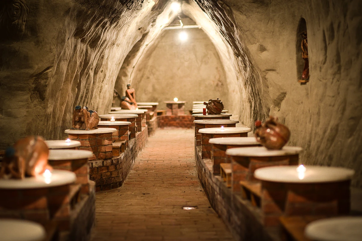 Naše vinařství se pyšní unikátním pískovcovým sklepem, který má historii dlouhou pět století, vyniká gotickým obloukem a je jedním z nejrozsáhlejších ve svém okolí. Nabízíme zde možnost ochutnat naše vinařské produkty při posezení u malých stolků, které dokážou pojmout až 50 návštěvníků. Zpestřením vaší návštěvy a ochutnávky vín bude kolekce humorných soch od znojemského sochaře Zdeňka Maixnera, které se v sklepě nacházejí.
