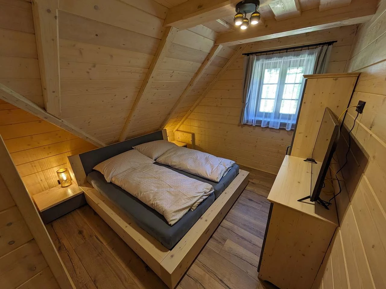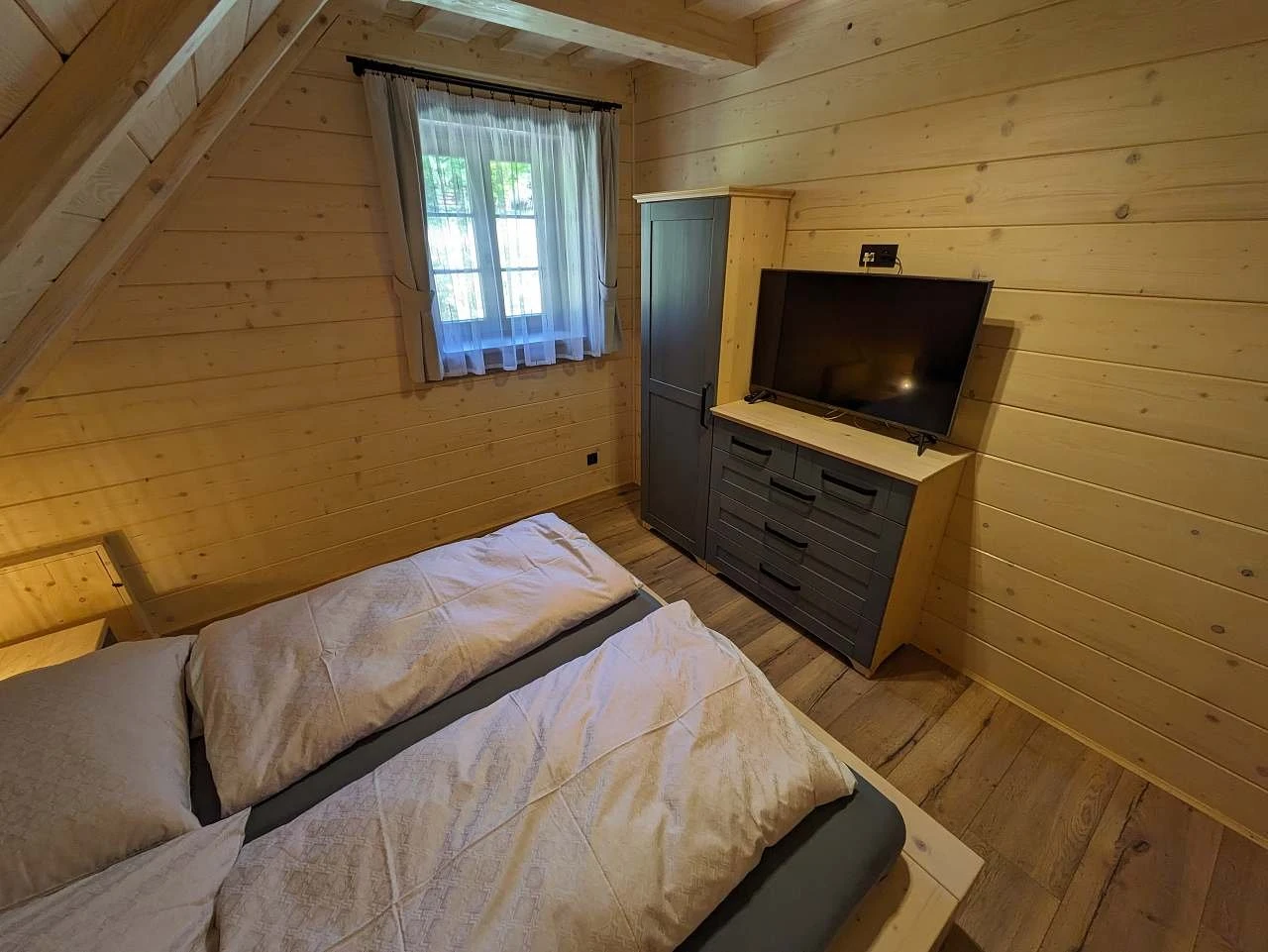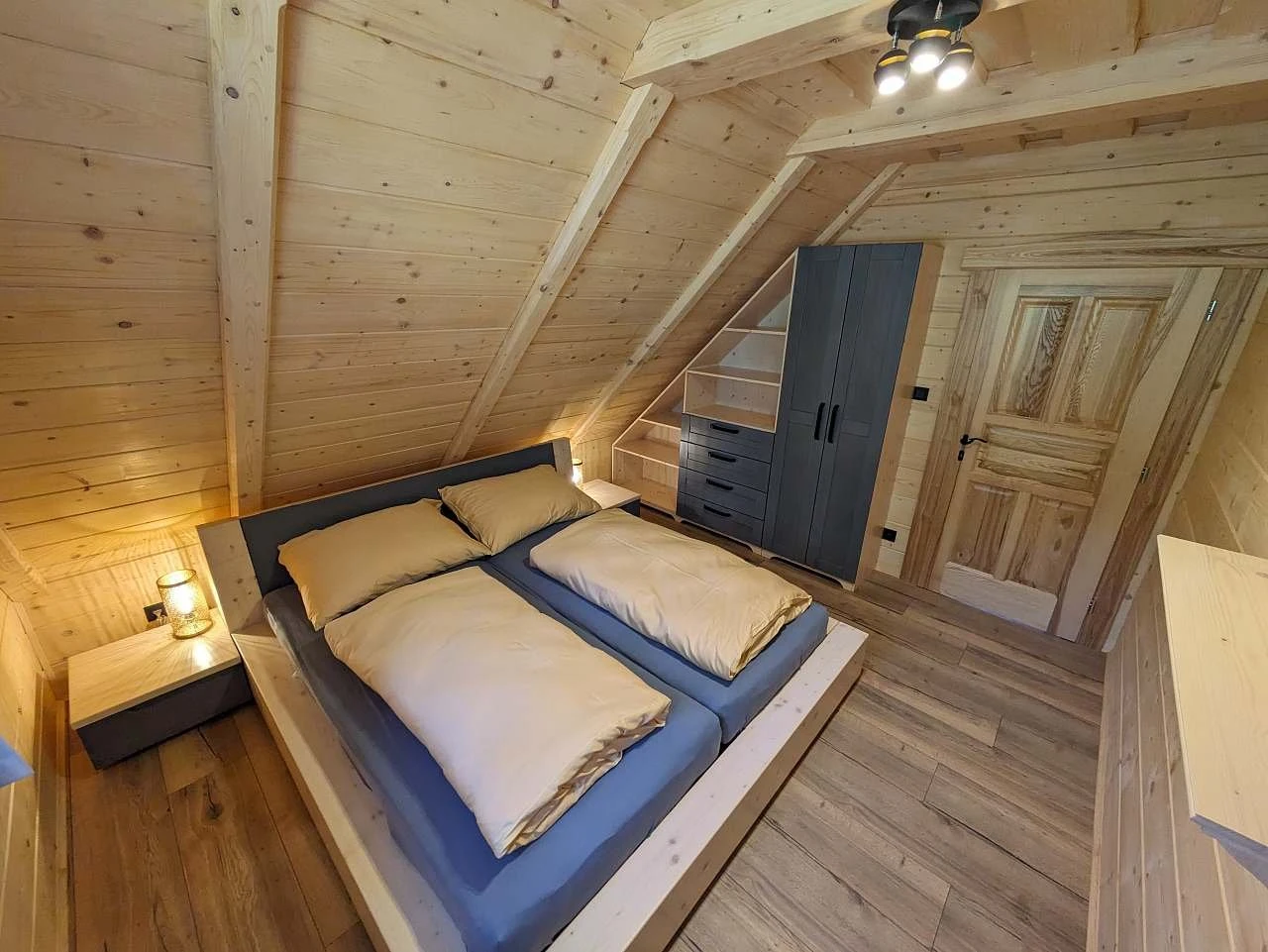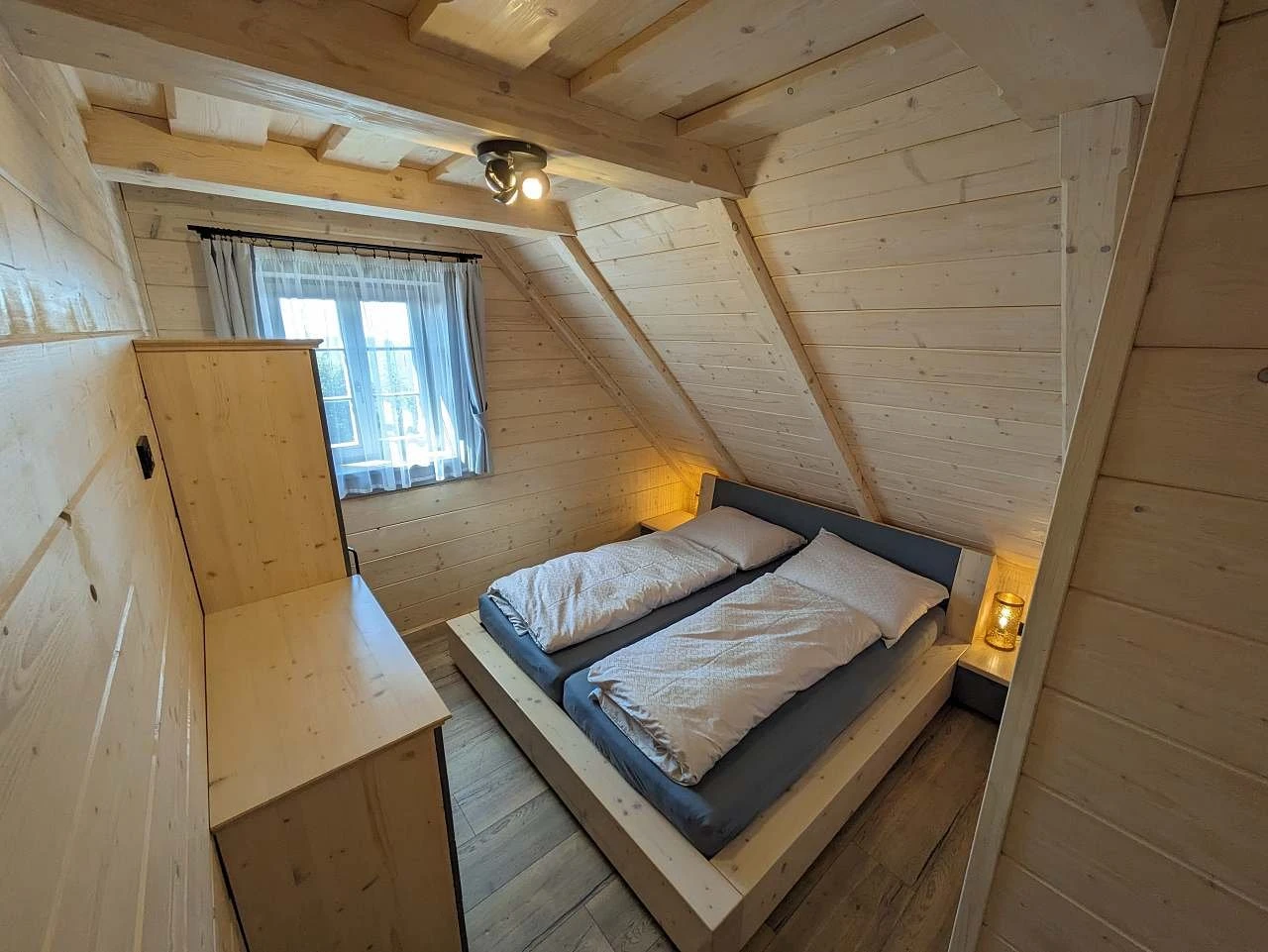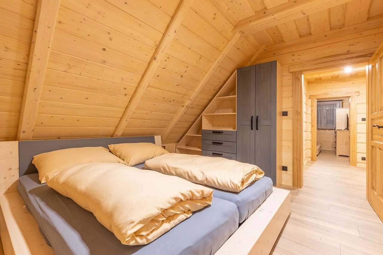 Ubytovací část tvoří čtyři ložnice, každá vybavená manželskou postelí z masivního dřeva, základním osvětlením a úložnými prostory (skříně, komody). V celém objektu jsou použity antialergické přikrývky a vybavení pro zajištění spánkového komfortu. V případě potřeby je možné využít také dvě rozkládací pohovky v obývacím pokoji.