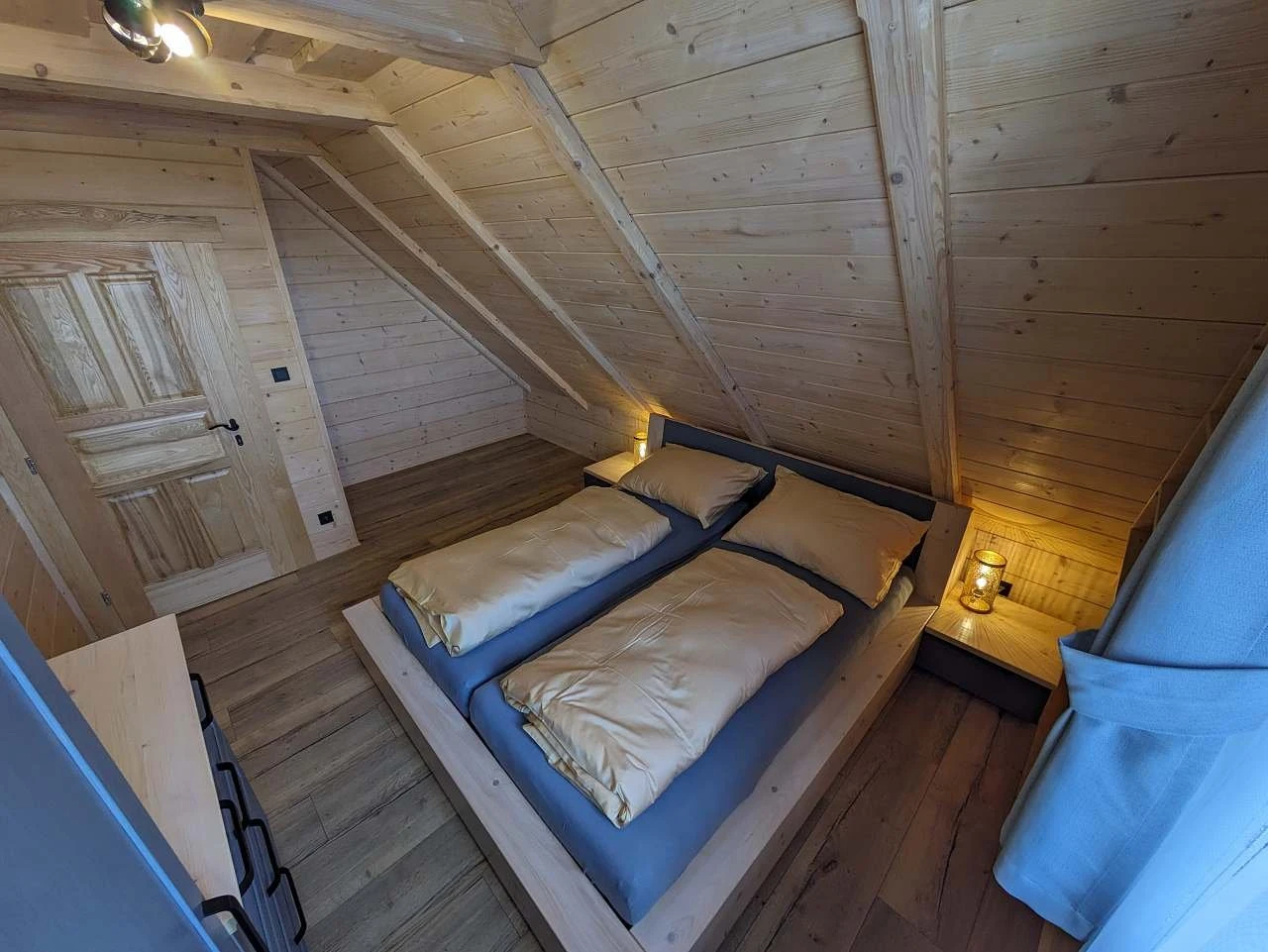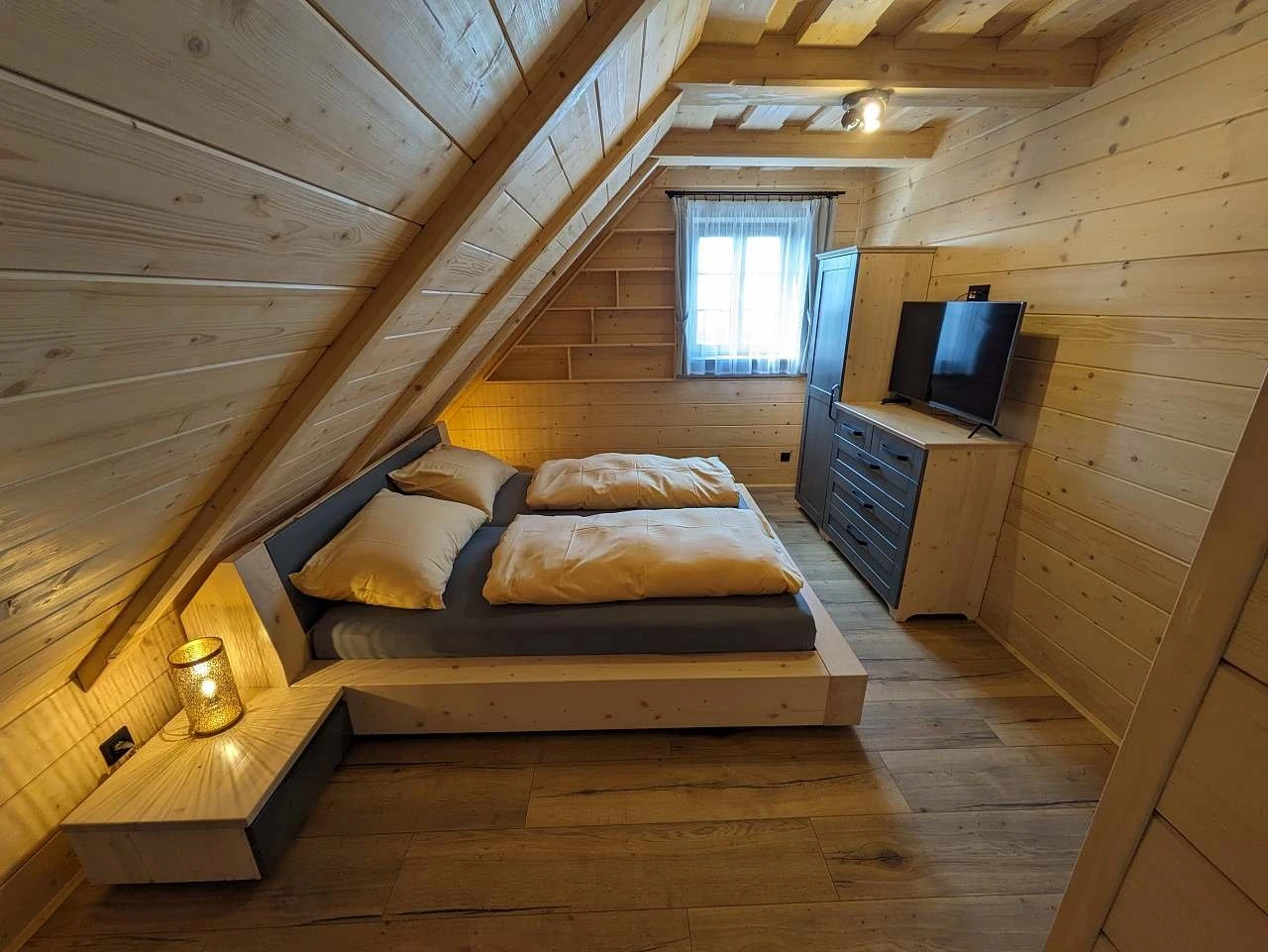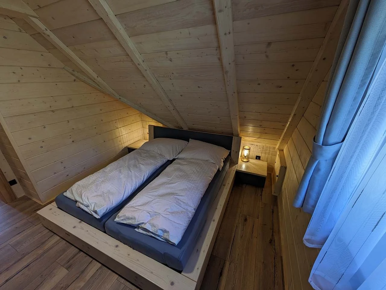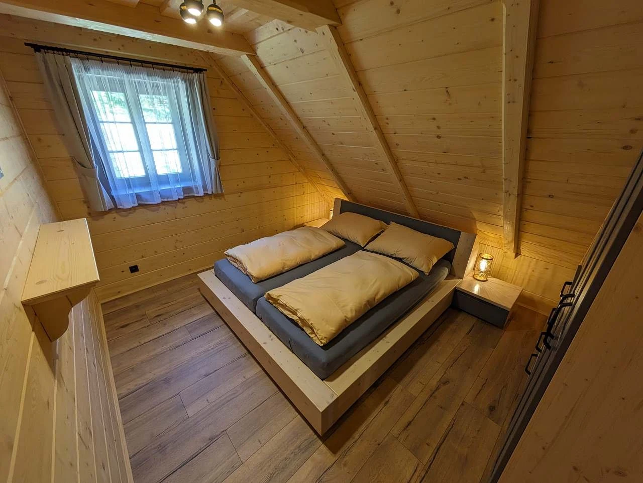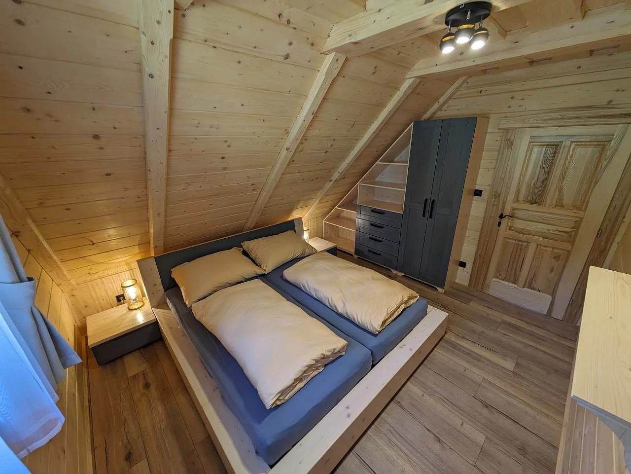Ubytovací část tvoří čtyři ložnice, každá vybavená manželskou postelí z masivního dřeva, základním osvětlením a úložnými prostory (skříně, komody). V celém objektu jsou použity antialergické přikrývky a vybavení pro zajištění spánkového komfortu. V případě potřeby je možné využít také dvě rozkládací pohovky v obývacím pokoji.