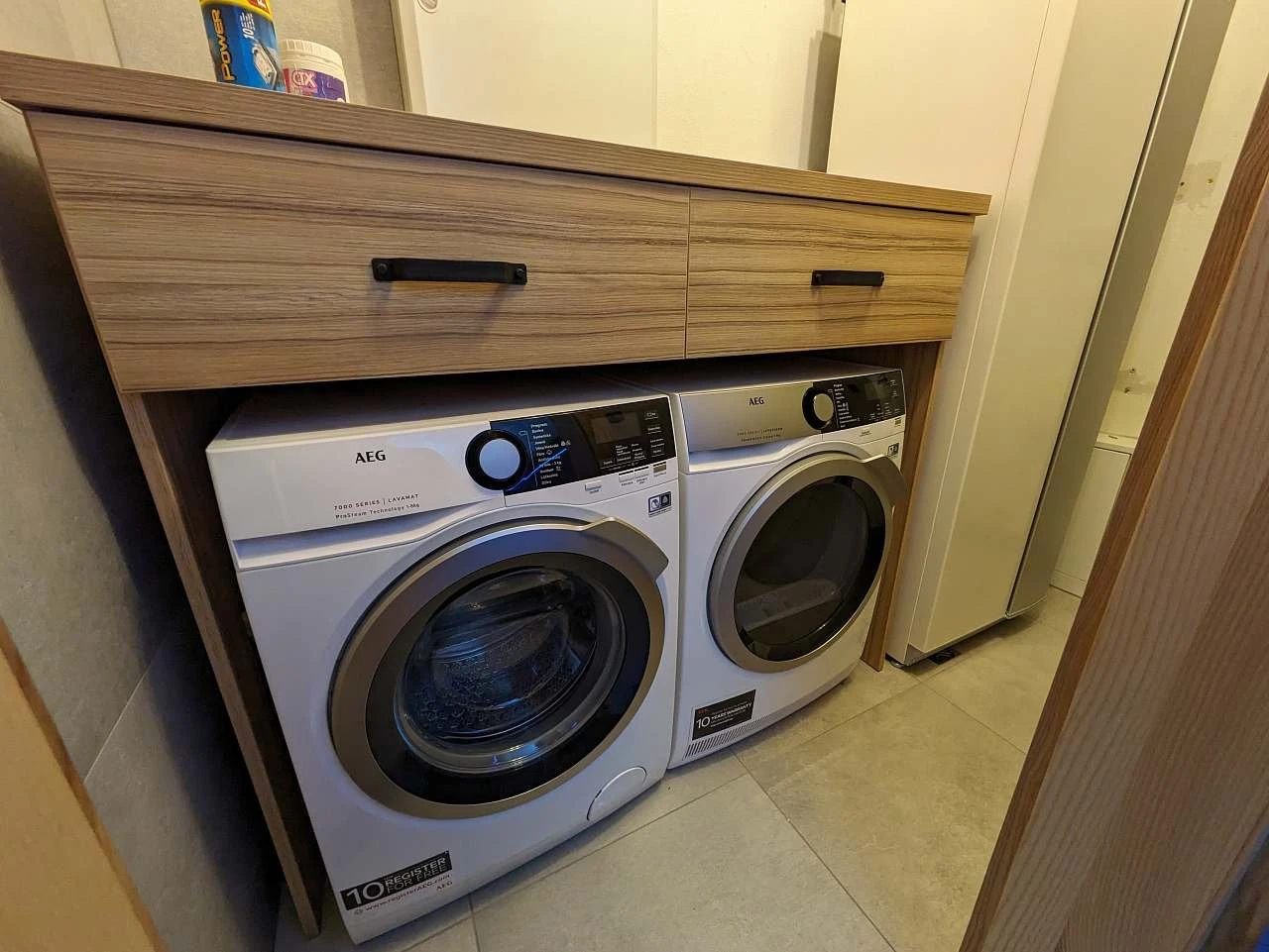 Mezi další vybavení patří kuchyňský robot, toastovač, myčka nádobí, mikrovlnná trouba, lednička a rychlovarná konvice.