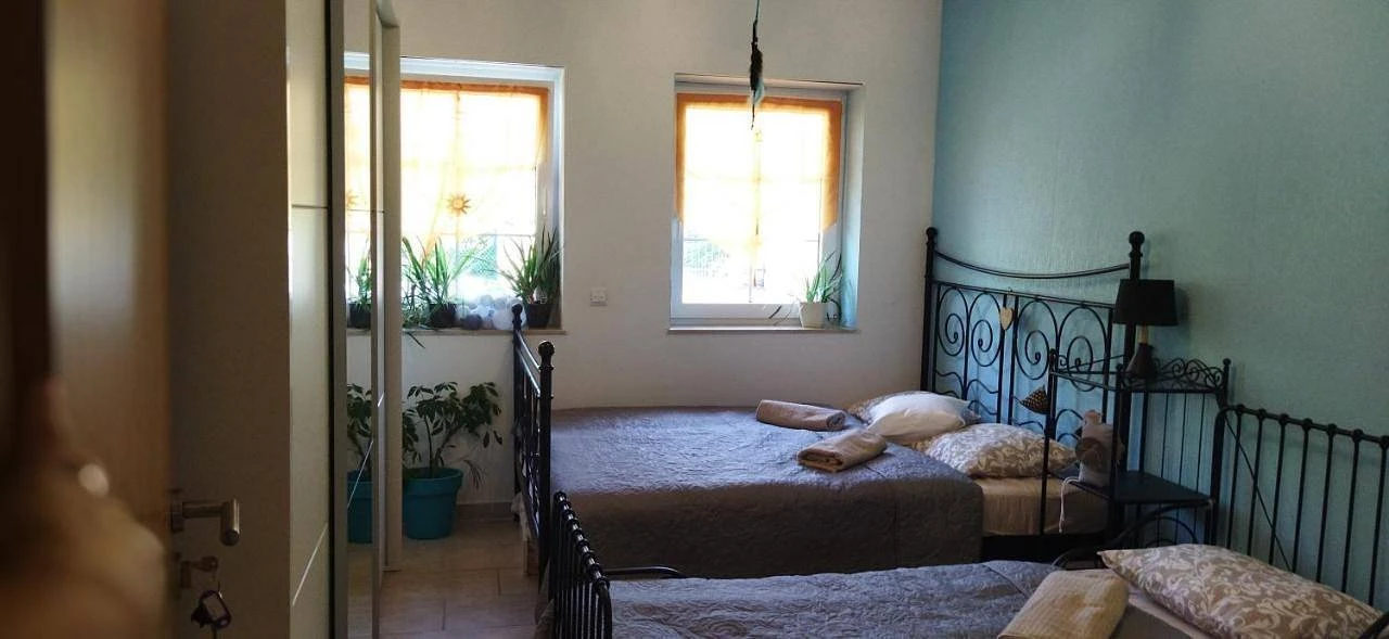 Apartmán v prvním patře má kapacitu 10 osob a velikost 110 m². Obsahuje 4 ložnice, plně vybavenou kuchyň, koupelnu s vanou, samostatné WC, pračku a sušičku. K dispozici jsou také 2 balkóny.