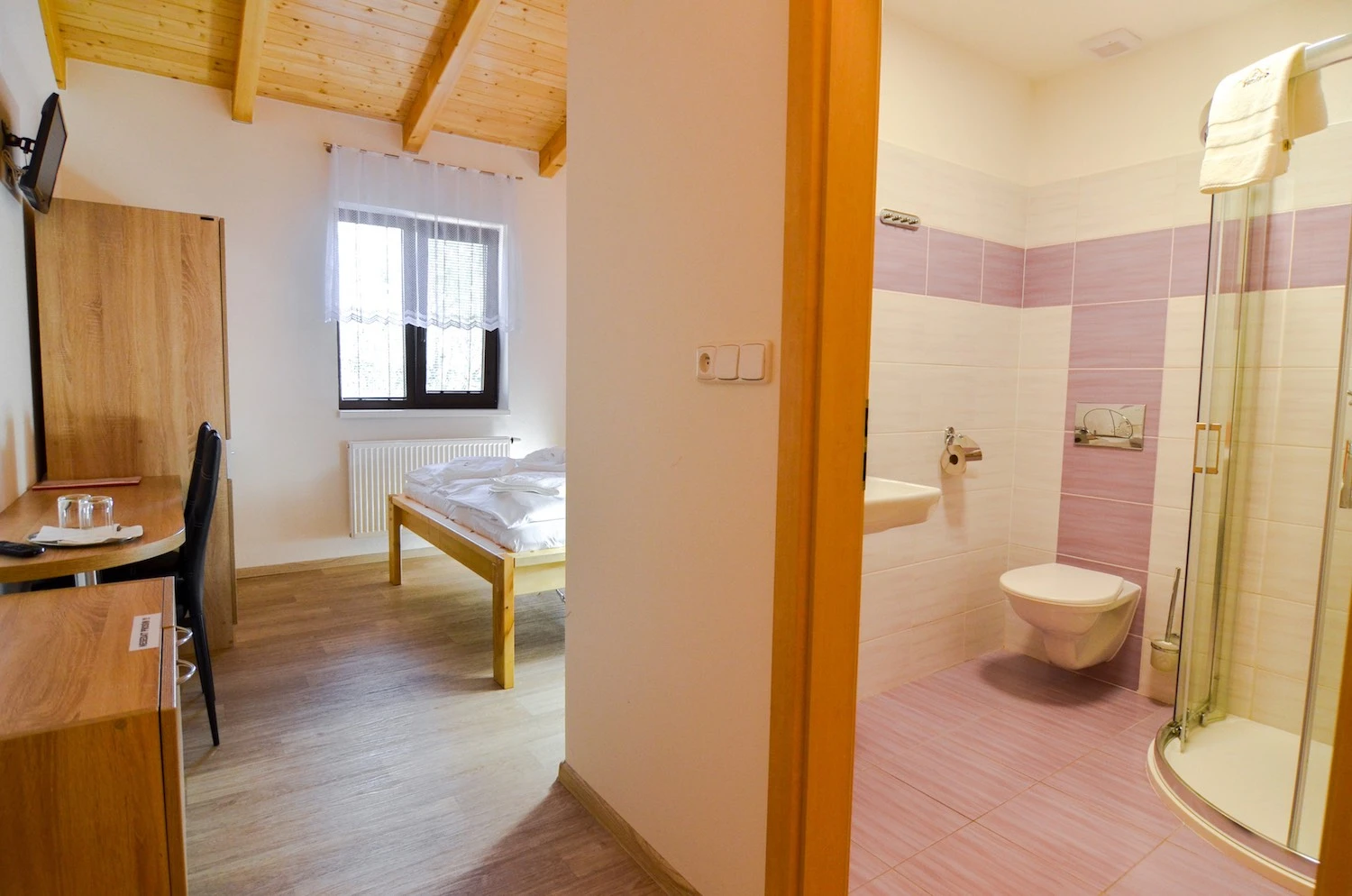 se sprchou, WC, vlastní klimatizací, TV