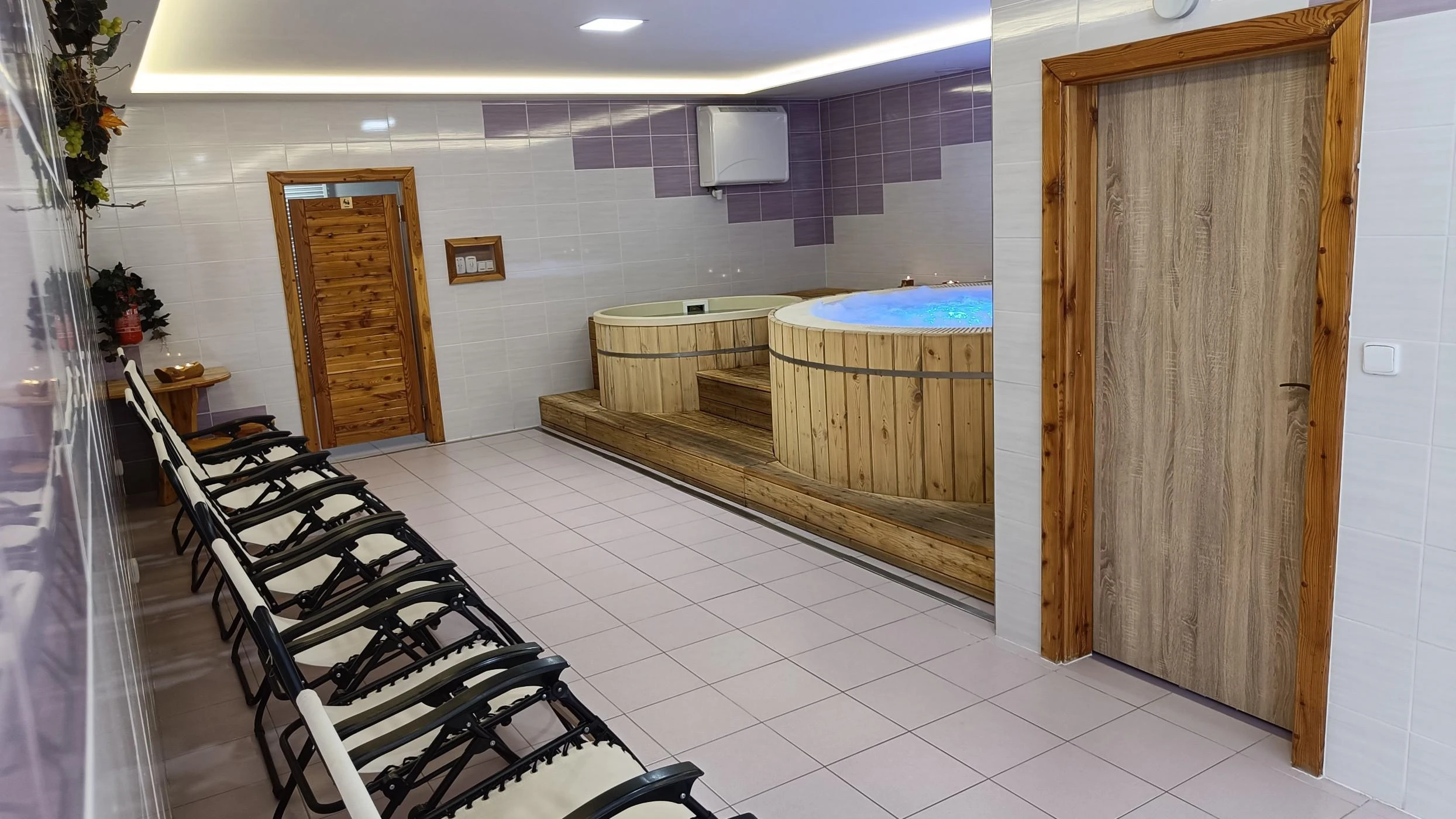 V hotelovém areálu se nachází wellness centrum, které zahrnuje vířivku vybudovanou z dřevěného sudu, finskou saunu a ochlazovací káď. Hosté si mohou vychutnat širokou škálu masáží a relaxačních procedur, což přispívá k celkovému uvolnění a regeneraci.